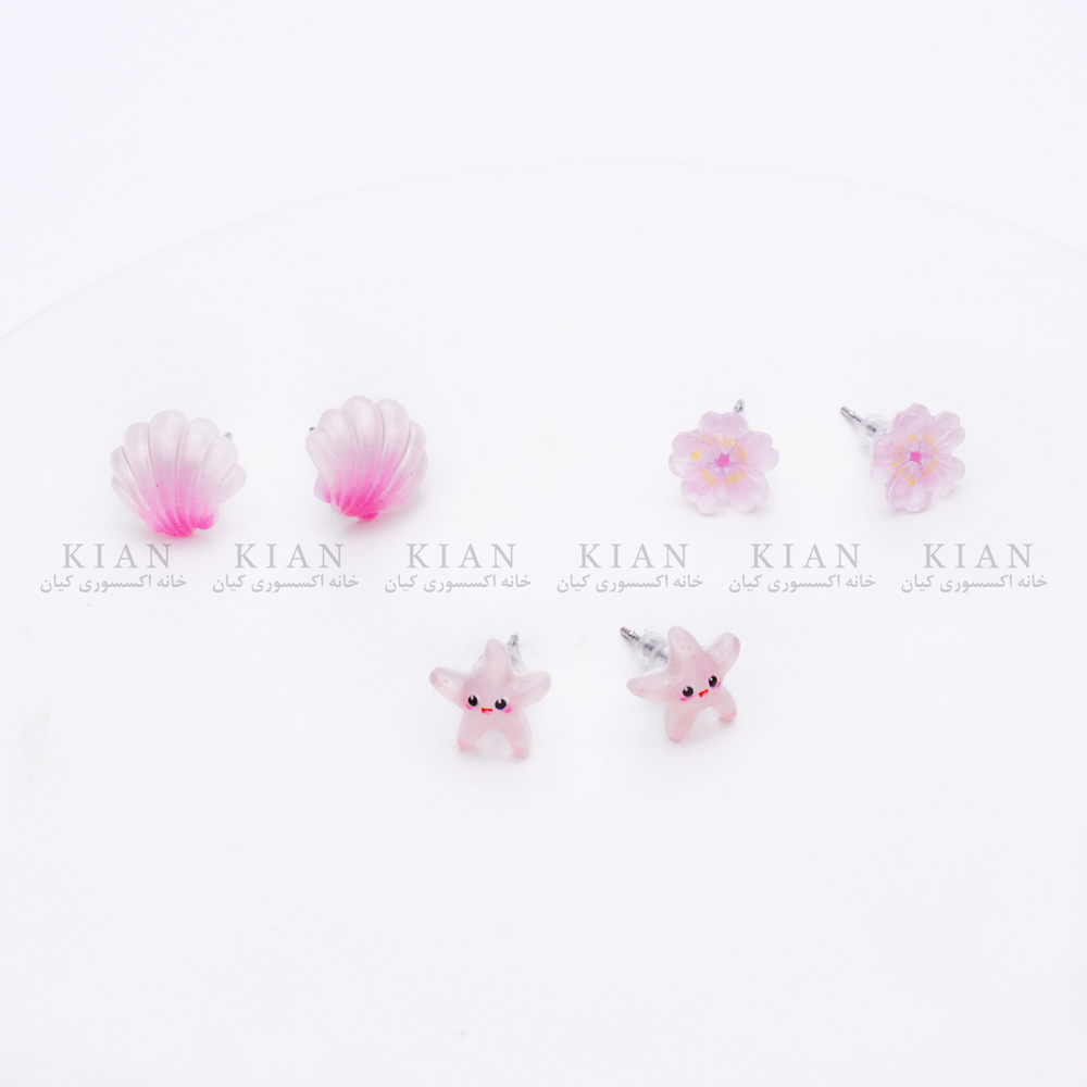 پک گوشواره فانتزی صدف صورتی