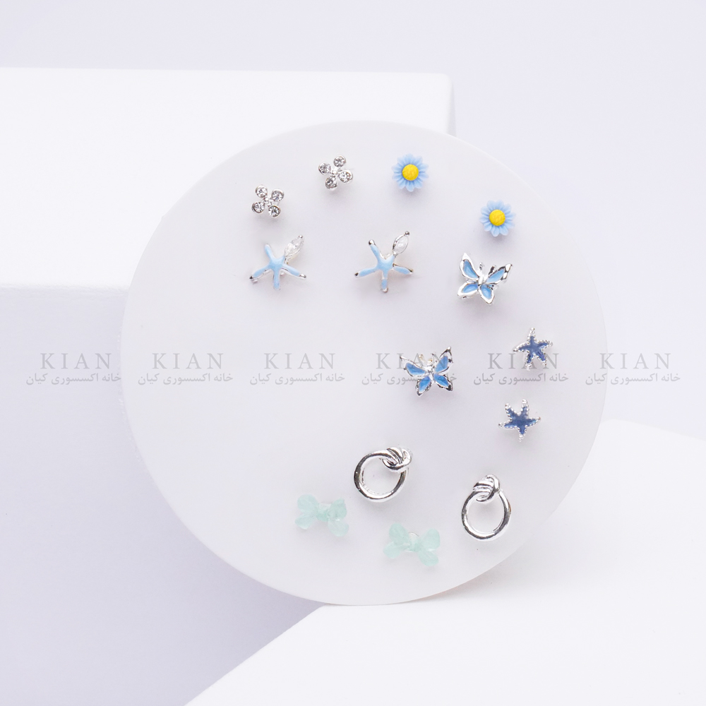تمام گوشوارهها از فلز ضد حساسیت ساخته شدهاند و با روکش براق نقرهای و جزئیات رنگ سبز ملایم، ظاهری تازه و دلانگیز ایجاد میکنند. وزن سبک و طراحی کوچک آنها باعث میشود برای استفاده روزمره یا هدیه دادن گزینهای ایدهآل باشند.