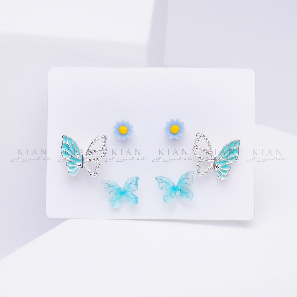 پک گوشواره پروانه دو رنگ سبز آبی