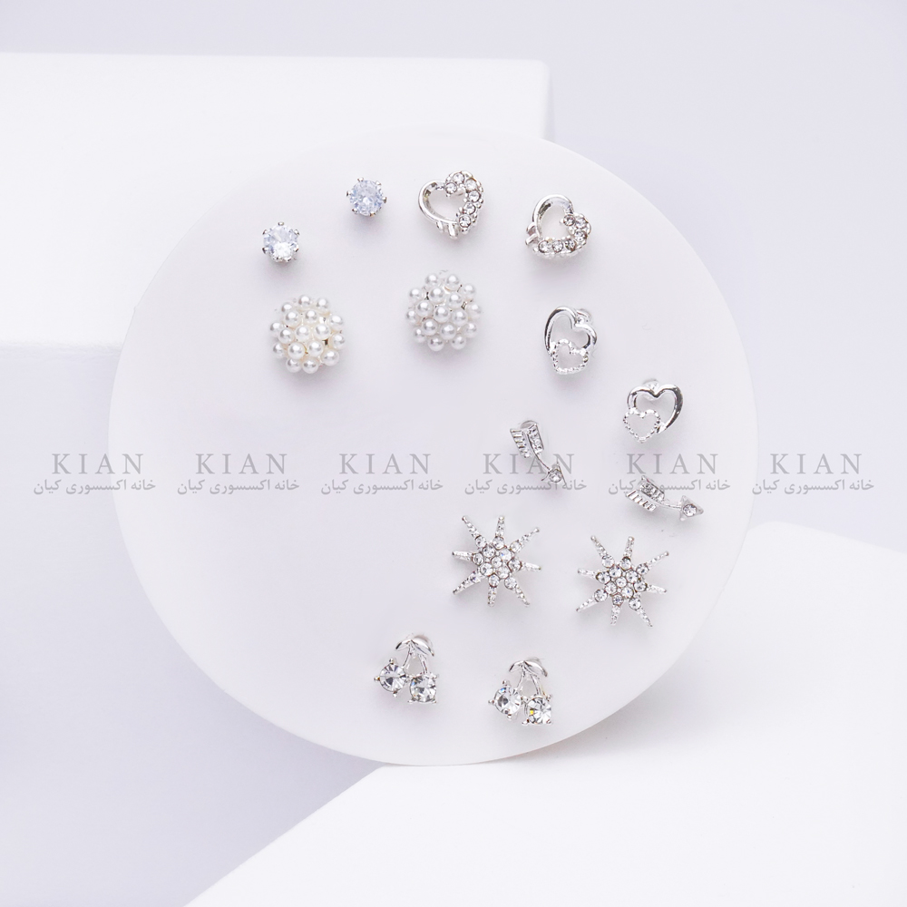 پک گوشواره گیلاس و مروارید از کالکشن شیک و ظریف خانه اکسسوری کیان، ترکیبی از طراحی فانتزی و کلاسیک است که استایل شما را خاص و درخشان می‌کند. این مجموعه شامل چند مدل گوشواره با طرح گیلاس‌های براق، مرواریدهای سفید و نگین‌های درخشان است که جلوه‌ای لطیف و زنانه به چهره می‌بخشند.