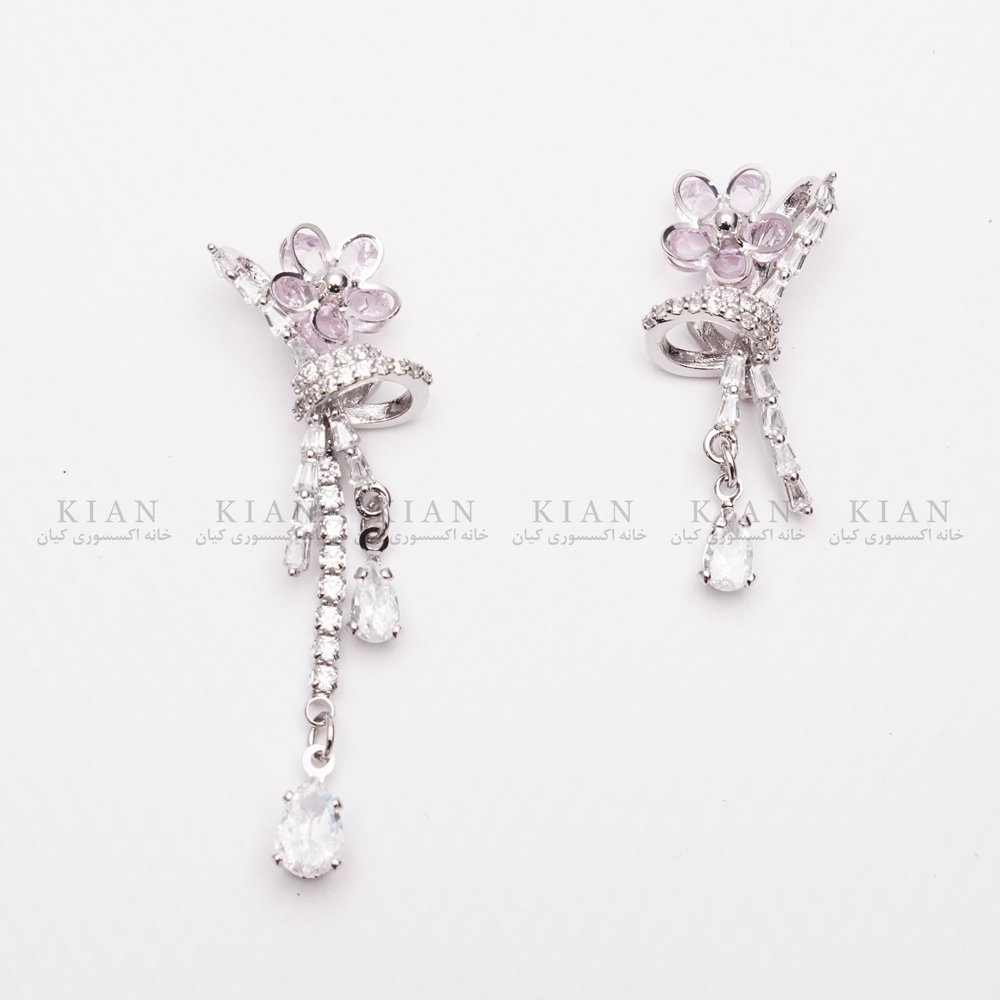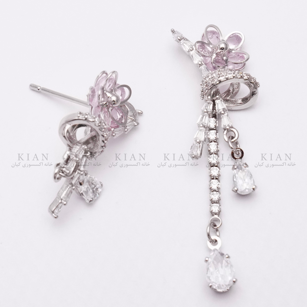 گوشواره آویز گل صورتی