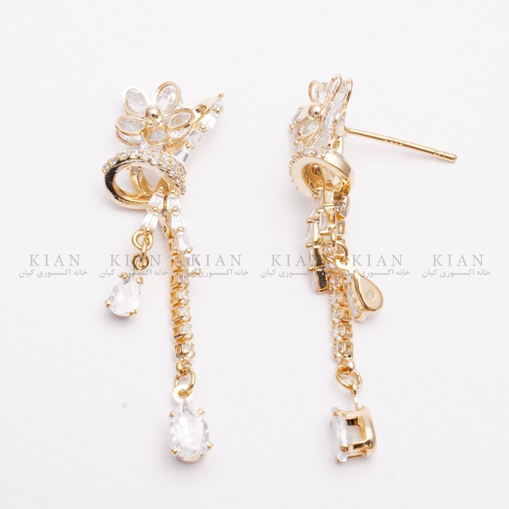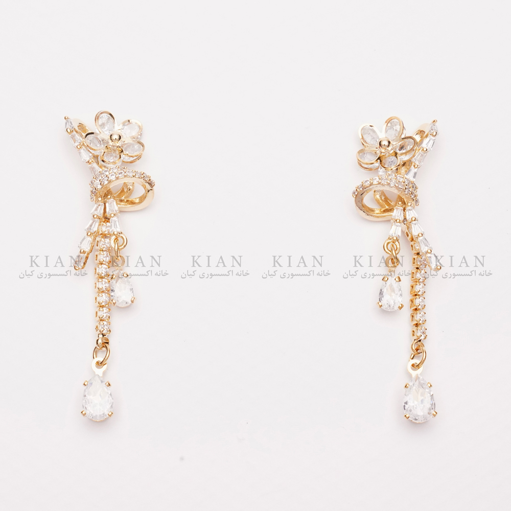 گوشواره آویز گل طلایی