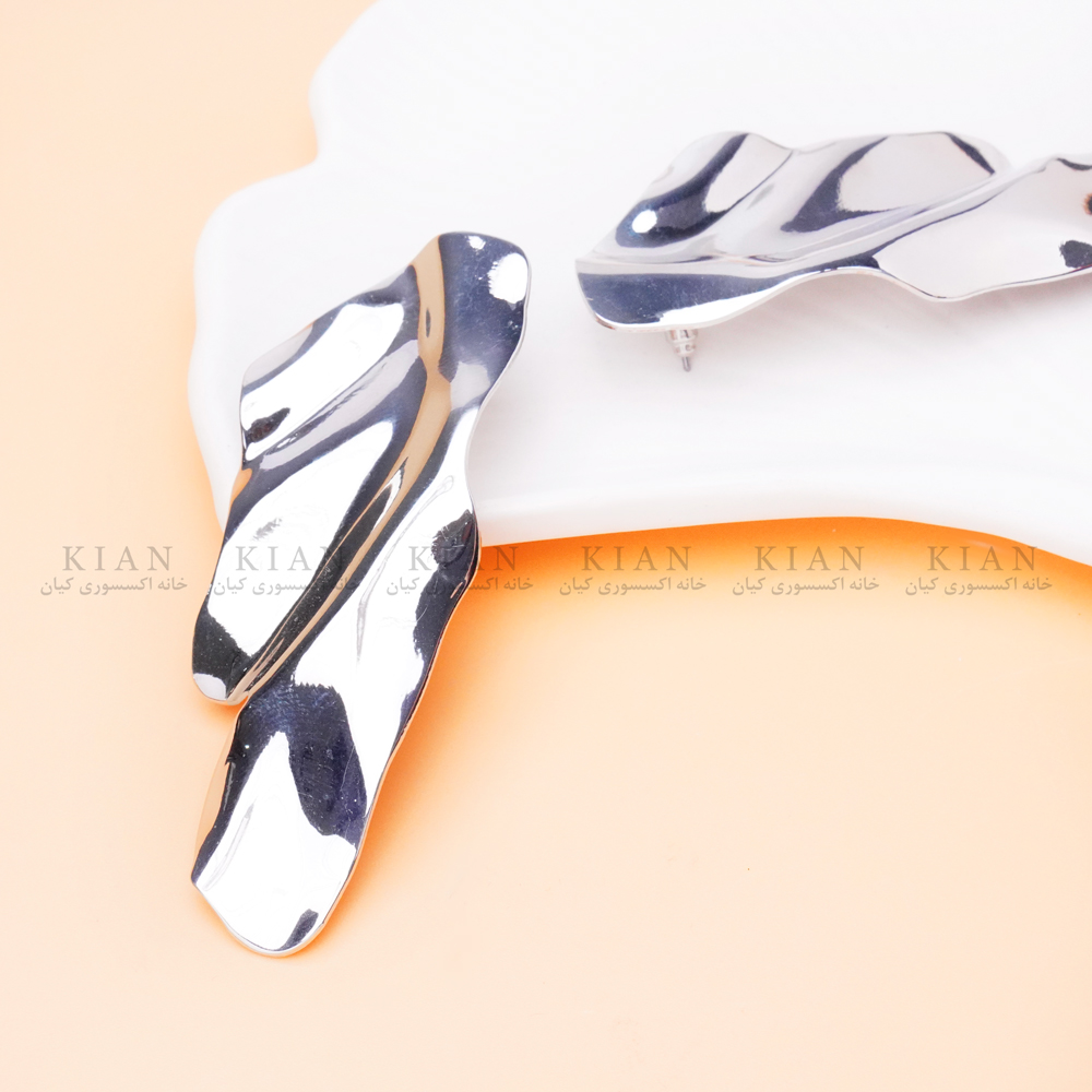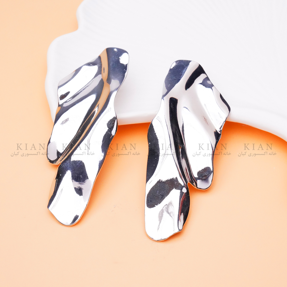 گوشواره برگ نقره ای با طراحی خاص برگ مانند و حالت دفرمه، انتخابی مدرن و متفاوت برای استایل های زنانه است. رنگ نقره ای درخشان این گوشواره جلوه ای لوکس و چشمگیر ایجاد کرده و به راحتی با استایل های رسمی و مجلسی ست می شود. این مدل خاص و هنری را می توانید از خانه اکسسوری کیان با کیفیت عالی و قیمت مناسب تهیه کنید.