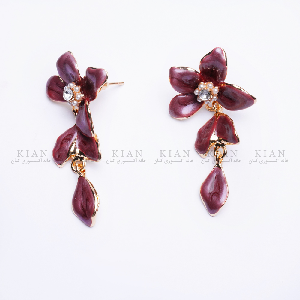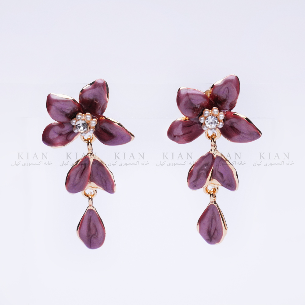 گوشواره بنفش آویزدار با طراحی گلبرگهای مینای بنفش و جزئیات مرواریدی، انتخابی ایدهآل برای بانوانی است که به دنبال اکسسوریهای ظریف، زنانه و خاص هستند. ترکیب رنگ ملایم بنفش با درخشش طلایی و نگینهای ریز در مرکز گل، جلوهای لطیف و چشمنواز ایجاد کرده است.