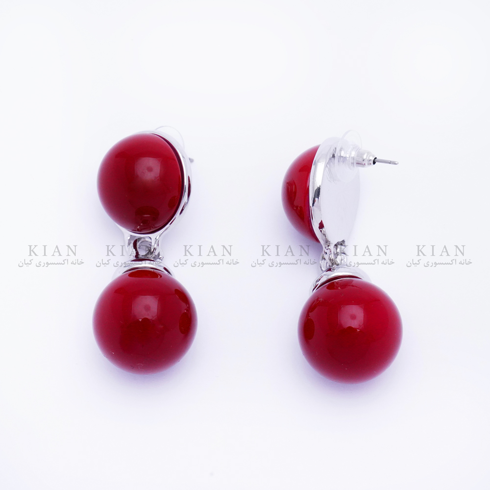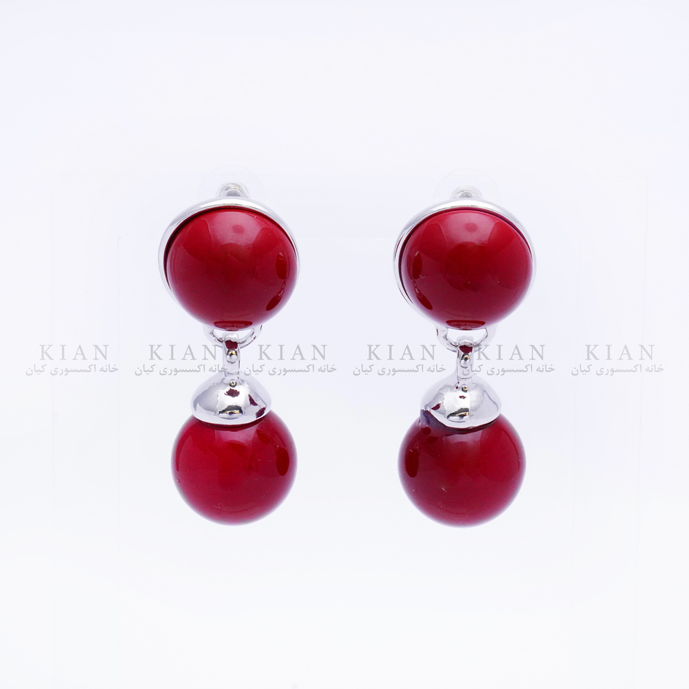 گوشواره توپی آویزی زرشکی نقره ای