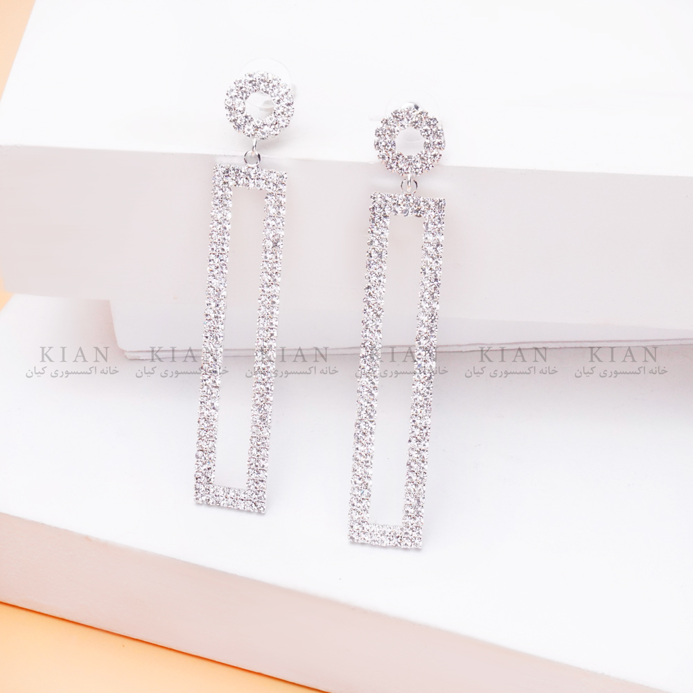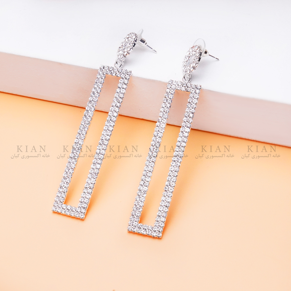 گوشواره جواهر مستطیل با طراحی ظریف و نگین های درخشان، انتخابی شیک و لوکس برای استایل های زنانه است. فرم مستطیلی این گوشواره جلوه ای مدرن و خاص به چهره شما می بخشد و برای مهمانی ها و مجالس رسمی انتخابی عالی است. این مدل پرطرفدار و چشمگیر را می توانید از خانه اکسسوری کیان با کیفیت بالا و قیمت مناسب تهیه کنید.