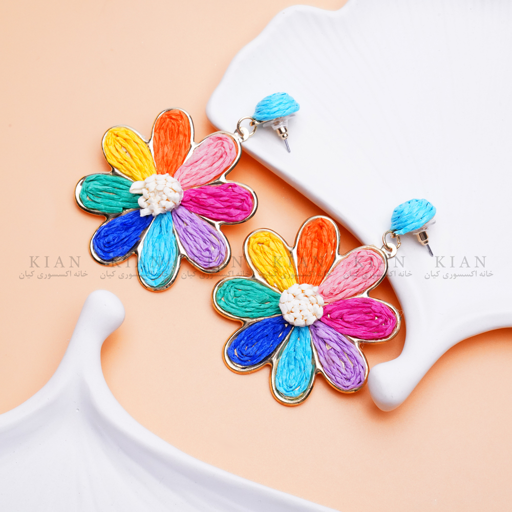 گوشواره حصیری گل رنگی طلایی با طراحی دست ساز و رنگ های شاد گل ها، جلوه ای جذاب و فانتزی به استایل شما می بخشد. گل های کوچک با رنگ های متنوع روی بافت حصیری ظریف، حس سرزندگی و انرژی مثبت را منتقل می کنند. مناسب استفاده روزمره، مهمانی های دوستانه و هدیه ای متفاوت برای بانوان خوش سلیقه، این مدل یکی از انتخاب های محبوب کلکسیون خانه اکسسوری کیان است