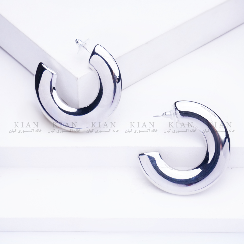 ساخته‌شده از فلز ضد حساسیت با روکش نقره ای مقاوم، این گوشواره هم سبک و راحت است و هم درخشش خود را در طول زمان حفظ می‌کند. طراحی خمیده و براق آن به‌زیبایی با فرم چهره هماهنگ می‌شود و استایلی گرم و لوکس خلق می‌کند.