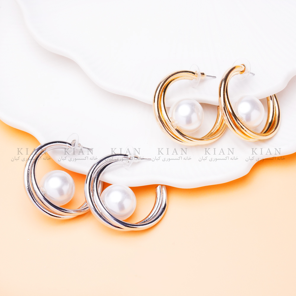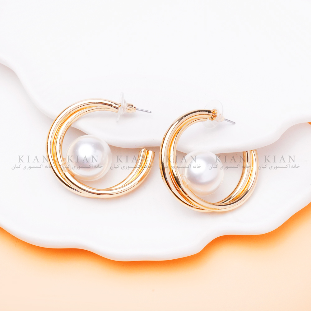 گوشواره حلقه ای ، گوشواره نیم حلقه مرواریدی طلایی