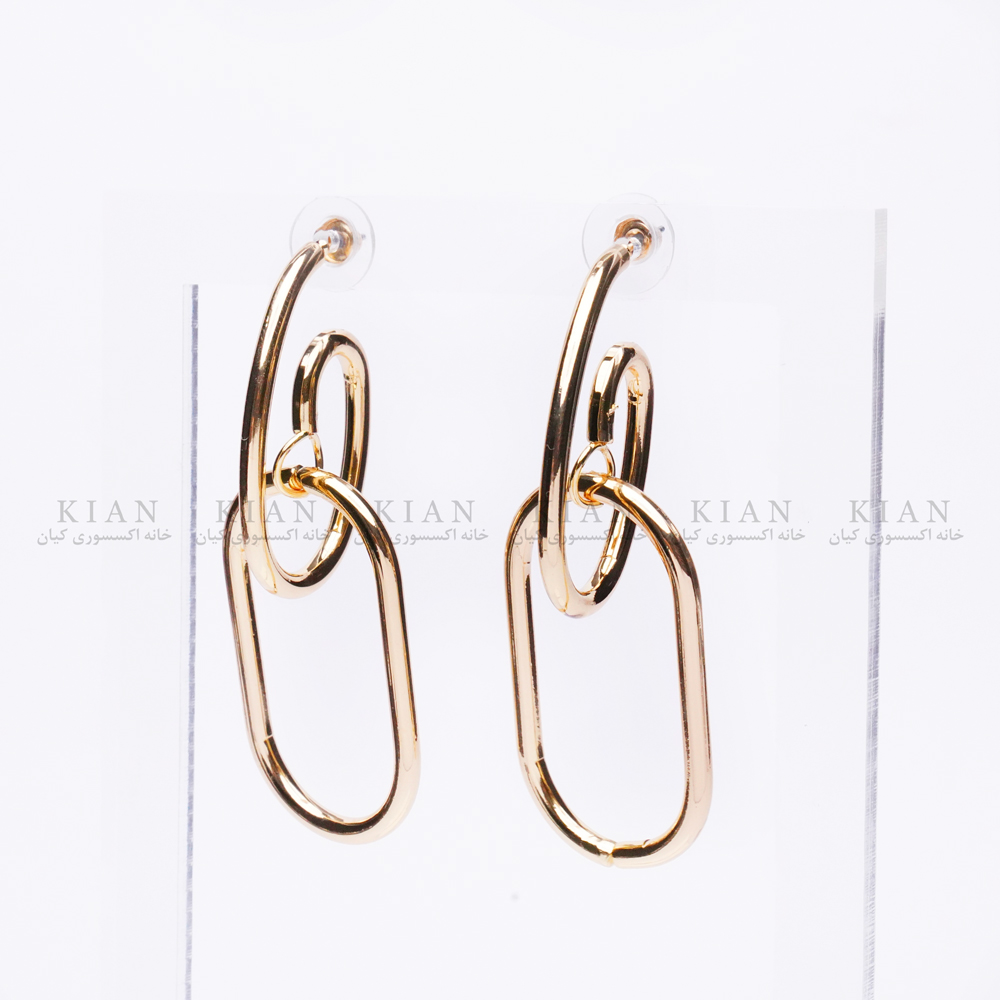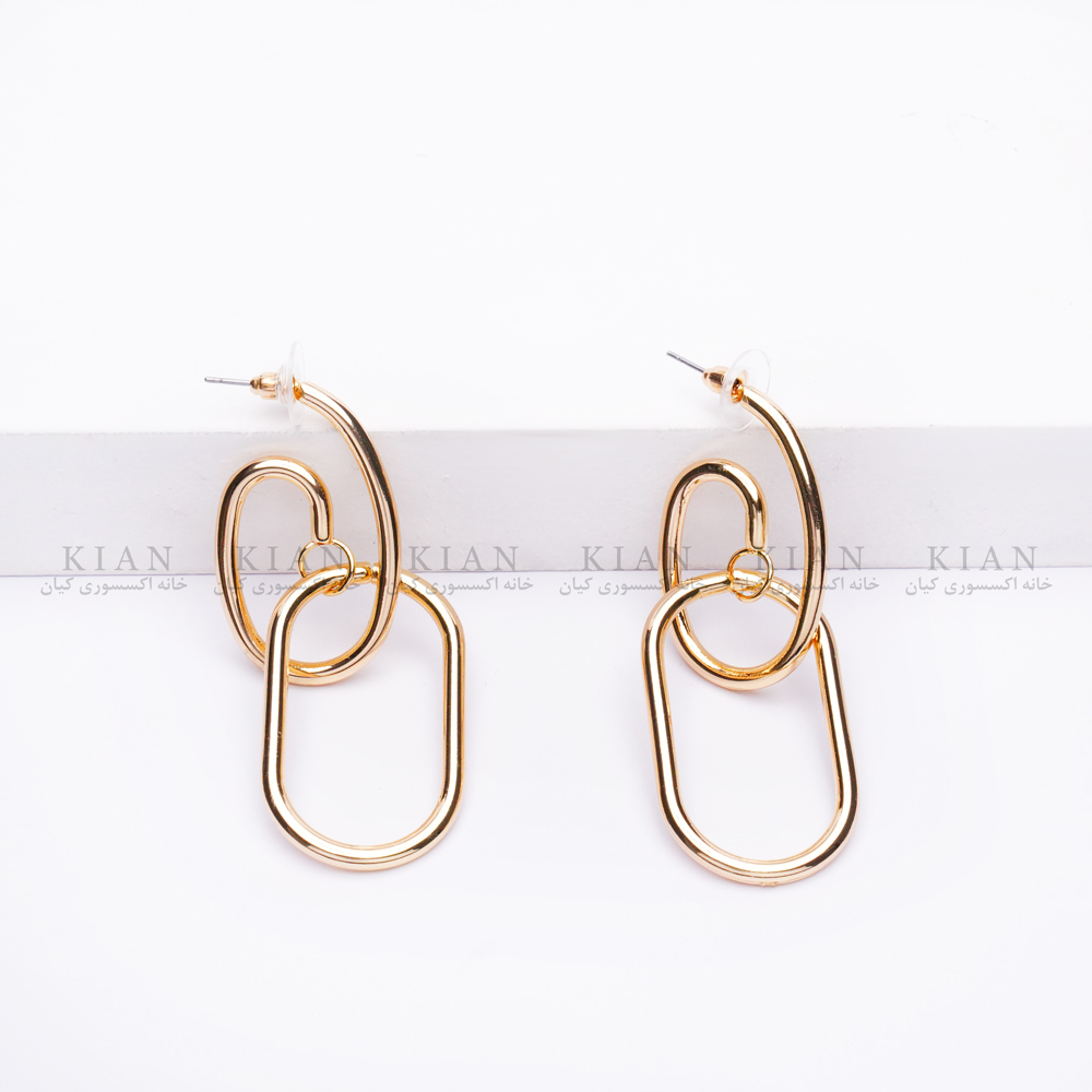 گوشواره زنجیری دو حلقه طلایی