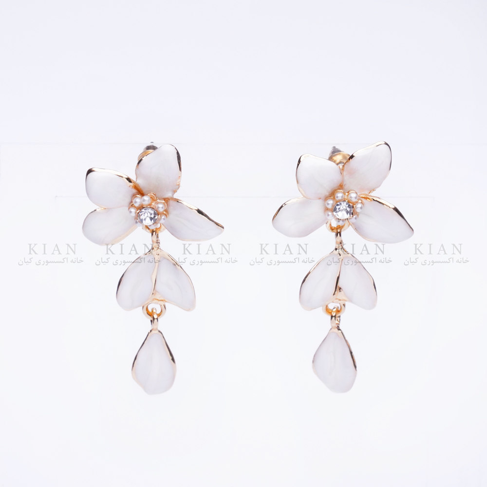 گوشواره سفید آویزدار با طراحی گلبرگهای مینای سفید و جزئیات مرواریدی، انتخابی ایدهآل برای بانوانی است که به دنبال اکسسوریهای ظریف، زنانه و خاص هستند. ترکیب رنگ ملایم سفید با درخشش طلایی و نگینهای ریز در مرکز گل، جلوهای لطیف و چشمنواز ایجاد کرده است.