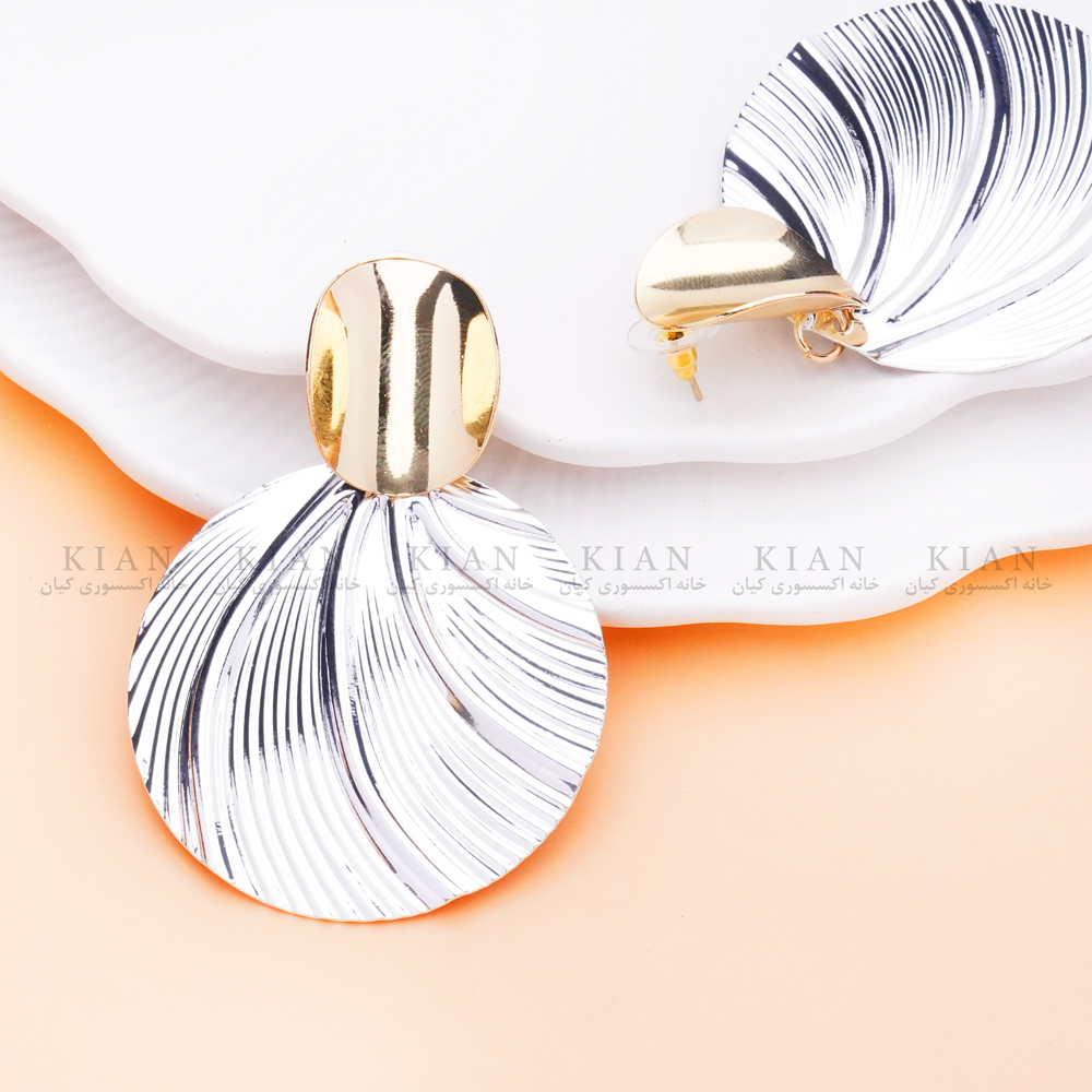 گوشواره صدفی بزرگ از مجموعه زیورآلات خاص خانه اکسسوری کیان، با طراحی دایره ای و الهام گرفته از صدف دریا، نمادی از درخشش طبیعی و زیبایی زنانه است. ترکیب رنگ نقره ای و طلایی در این مدل، جلوه ای مدرن و لوکس ایجاد کرده که برای استایل های مجلسی یا رسمی انتخابی ایده آل است.