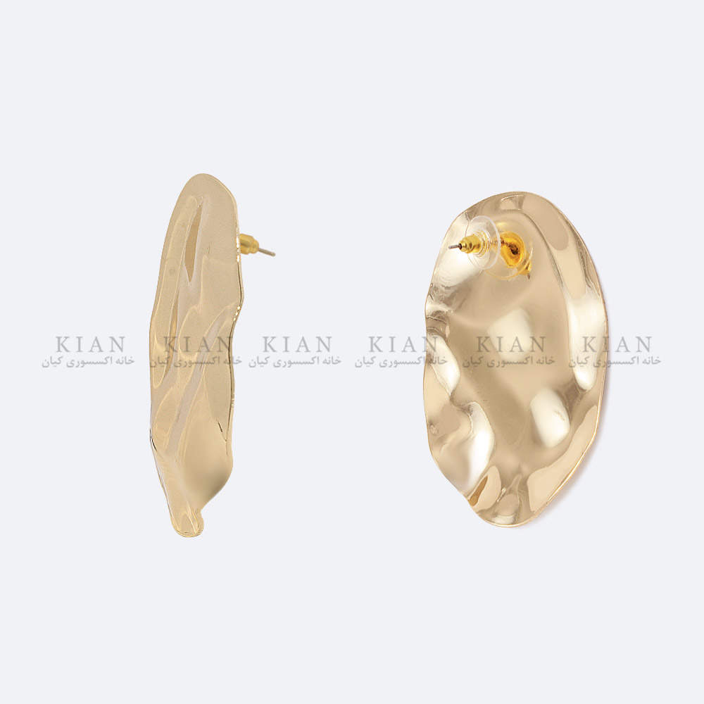 این گوشواره‌ها طراحی مدرن و جالبی دارند با سطح براق و فرم نامنظم که نمایی شبیه به یک ورقه یا سطح صاف و کمی فرو رفته به خود می‌گیرند.