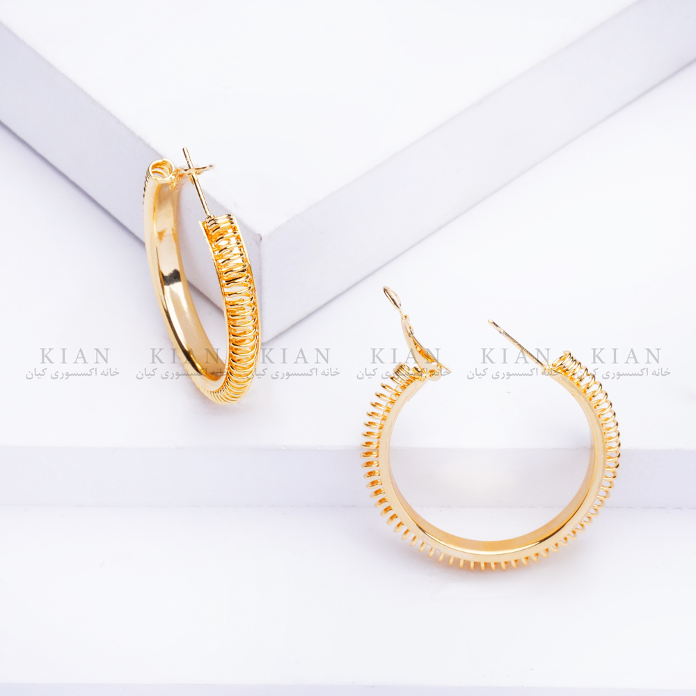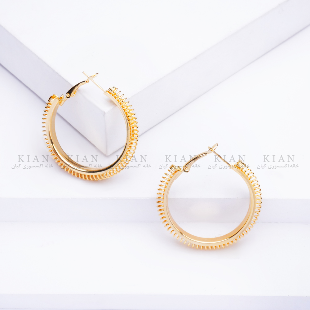گوشواره فنری توری طلایی از کالکشن خاص و خلاقانه‌ی خانه اکسسوری کیان، با طراحی توری‌مانند و پیچ‌خورده‌ی فنری، جلوه‌ای مدرن و درخشان به استایل شما می‌بخشد. این مدل بافتی سه‌بعدی و براق دارد که در نور برق زیبایی ایجاد می‌کند و توجه را به خود جلب می‌نماید.