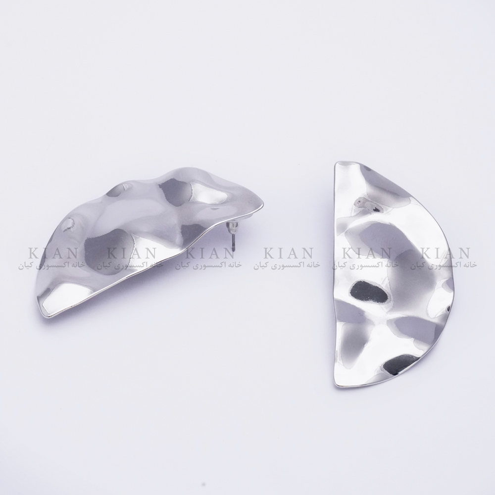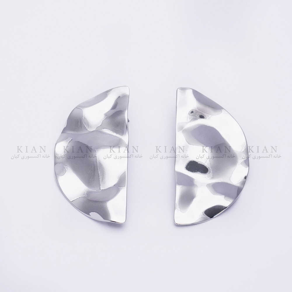 این گوشواره‌ها با طراحی هندسی به شکل نیم‌دایره و سطح نامنظم و چکشی‌شده، جلوه‌ای مدرن و منحصربه‌فرد دارند. رنگ نقره‌ای براق به آن‌ها ظاهری شیک و مینیمال بخشیده است. این سبک مناسب افرادی است که به دنبال اکسسوری‌های متفاوت و خاص هستند!