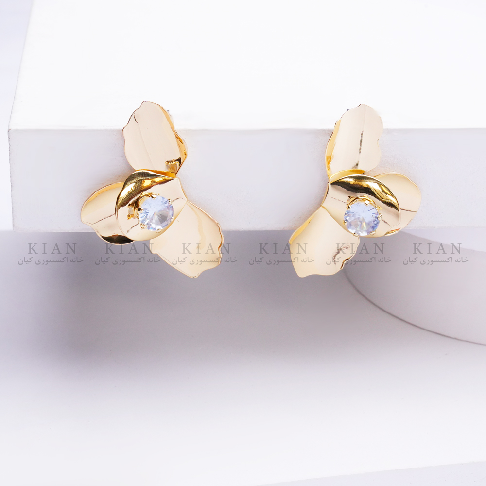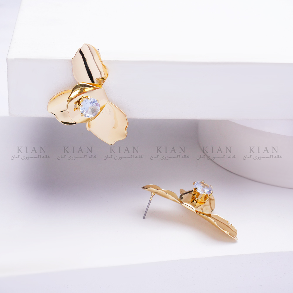 گوشواره نیمگل طلایی نگیندار از مجموعهی خاص خانه اکسسوری کیان، با طراحی ظریف و درخشان خود، ترکیبی از لطافت و جلوهی زنانه را به استایل شما میبخشد. نگینهای براق روی گل طلایی در نور میدرخشند و حالتی شیک و مجلل ایجاد میکنند.