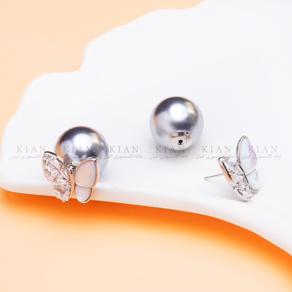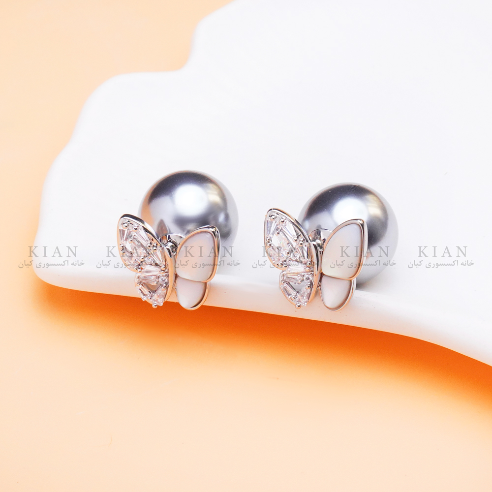 گوشواره پروانه و گوی نقره ای