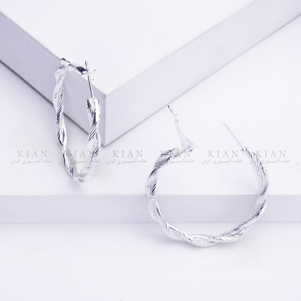 گوشواره پیچ نقره ای براق