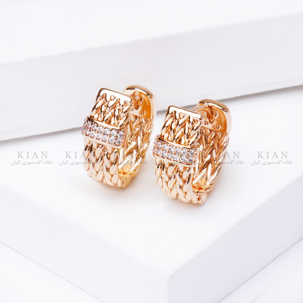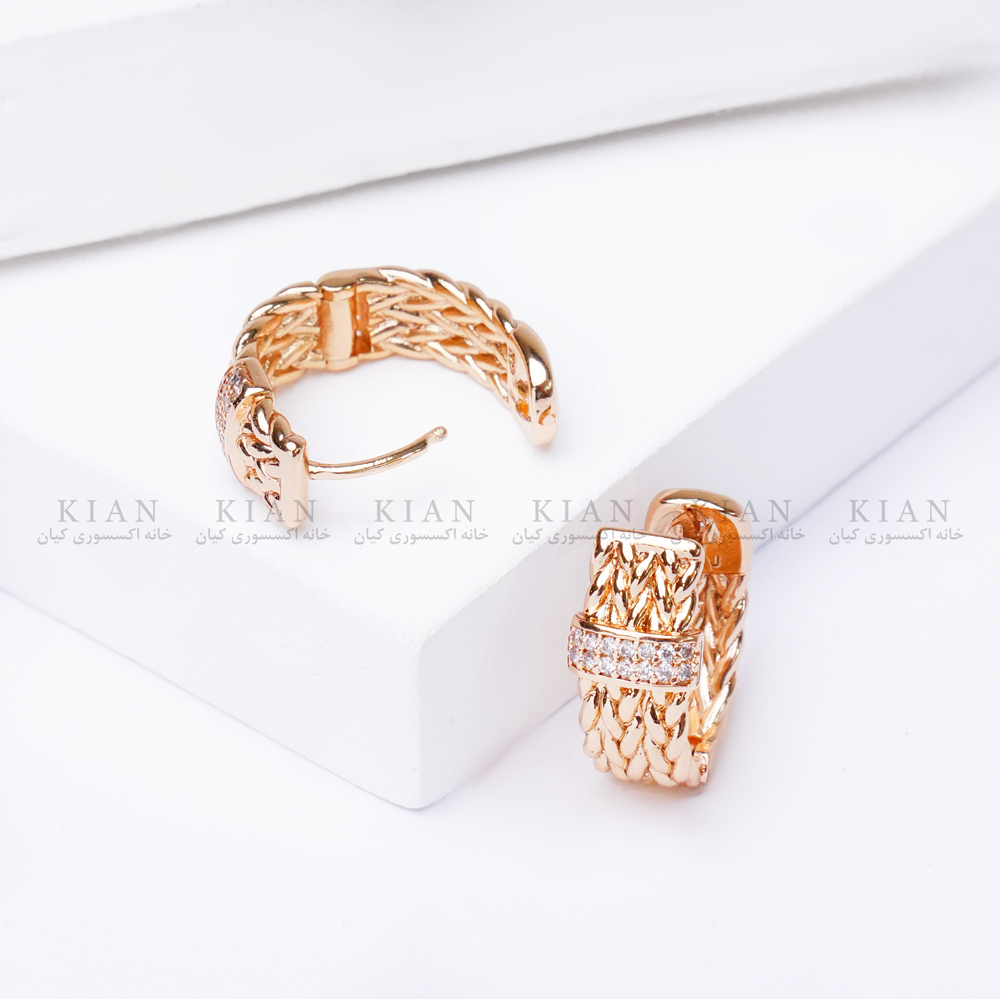 گوشواره ژوپینگ بافت نگیندار یکی از لوکسترین، درخشانترین و پرفروشترین مدلهای حلقهای در مجموعه زیورآلات خانه اکسسوری کیان است؛ مدلی که با ترکیب بافت برجسته و ردیف نگینهای براق، جلوهای فوقالعاده شکیل و چشمگیر روی گوش ایجاد میکند.