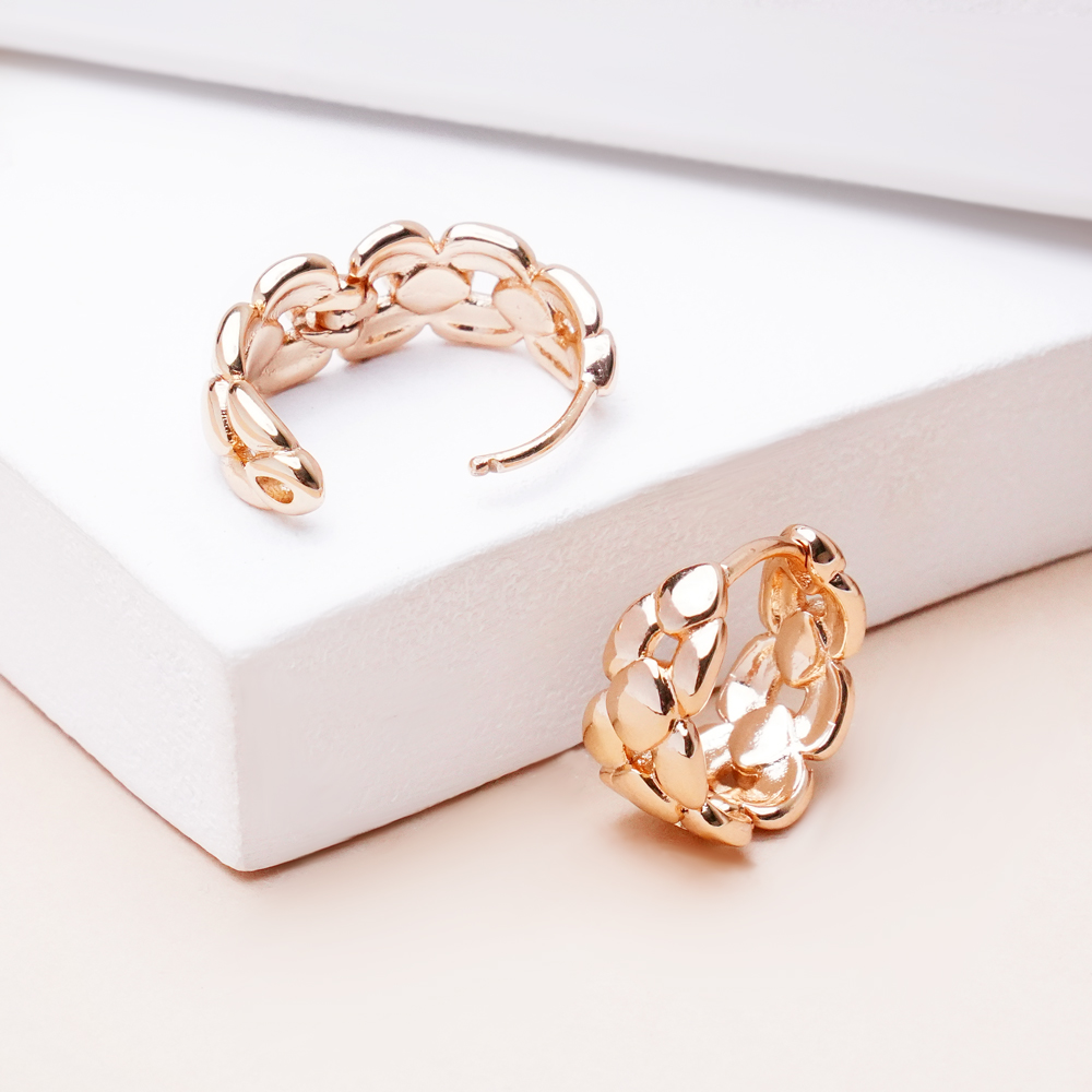 گوشواره ژوپینگ تمساح با رنگ طلایی براق و طراحی خاص الهامگرفته از بافت پوست تمساح، جلوهای متفاوت و جسورانه به استایل شما میبخشد. جزئیات برجسته و بافتدار این مدل باعث درخشش و عمق بیشتر آن روی گوش شده و آن را به انتخابی خاص برای استایلهای مجلسی و شیک تبدیل میکند. این گوشواره با کیفیت ساخت مناسب و طراحی ترند، توسط خانه اکسسوری کیان با دقت انتخاب شده است.