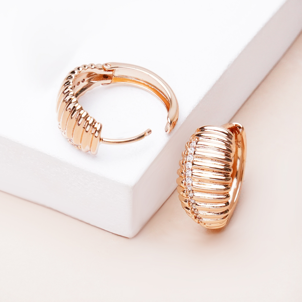 گوشواره ژوپینگ خطدار برجسته با رنگ طلایی براق و طراحی خاص، جلوهای شیک و مدرن به استایل شما میبخشد. خطوط برجسته و منظم روی سطح گوشواره باعث انعکاس زیبای نور شده و آن را به انتخابی مناسب برای استایلهای مجلسی و نیمهرسمی تبدیل میکند. این مدل با فرم خوشساخت و کیفیت مناسب، از زیورآلات انتخابشدهی خانه اکسسوری کیان است.
