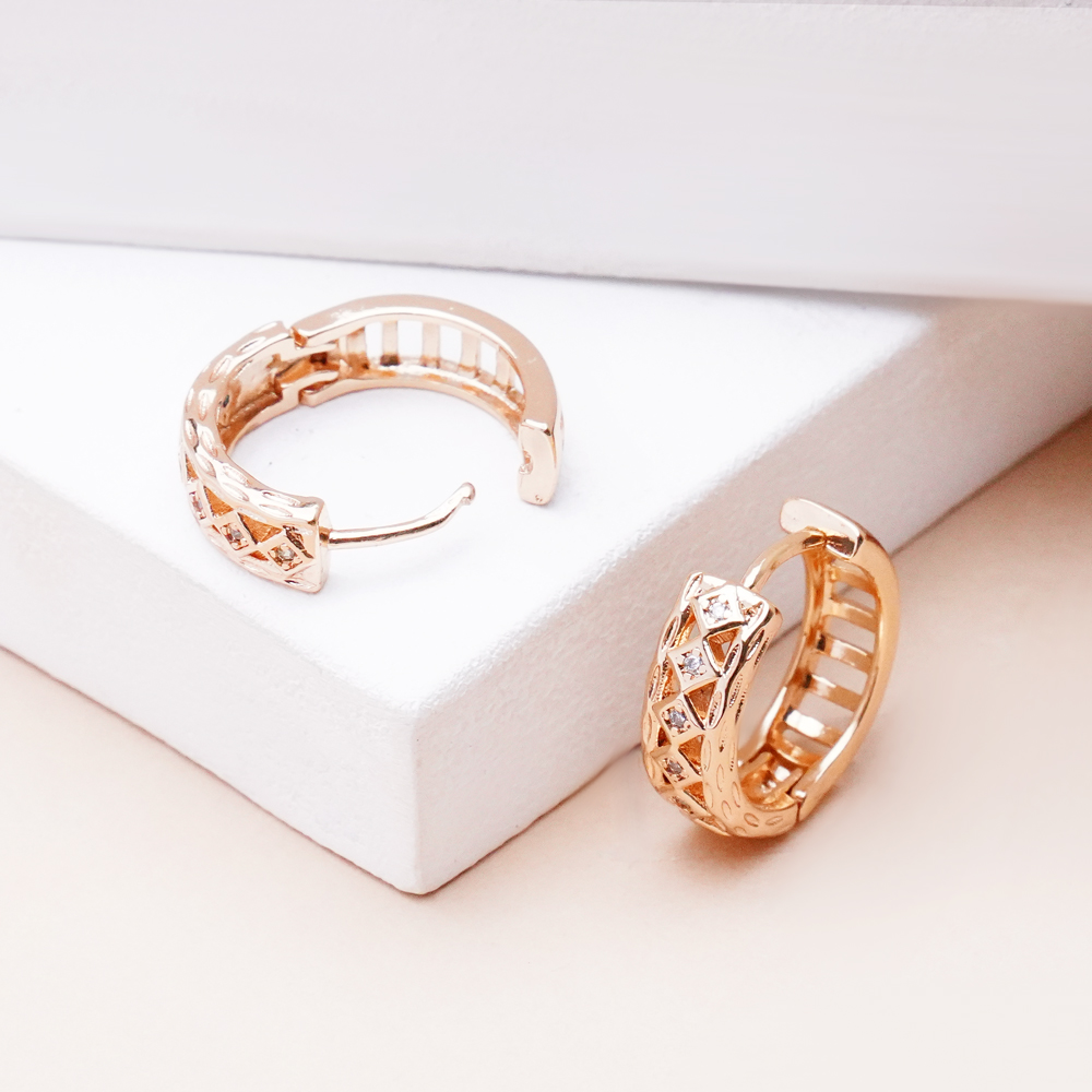 گوشواره ژوپینگ طرحدار نگینی با رنگ طلایی براق و طراحی خاص، جلوهای لوکس و چشمگیر به استایل شما میبخشد. نگینهای ریز و درخشان بهکاررفته در کنار طرح برجسته و بافتدار، زیبایی و عمق بیشتری به این مدل داده و آن را برای استایلهای مجلسی و شیک ایدهآل کرده است. این گوشواره با انتخاب دقیق و سلیقهای از سوی خانه اکسسوری کیان عرضه شده است.
