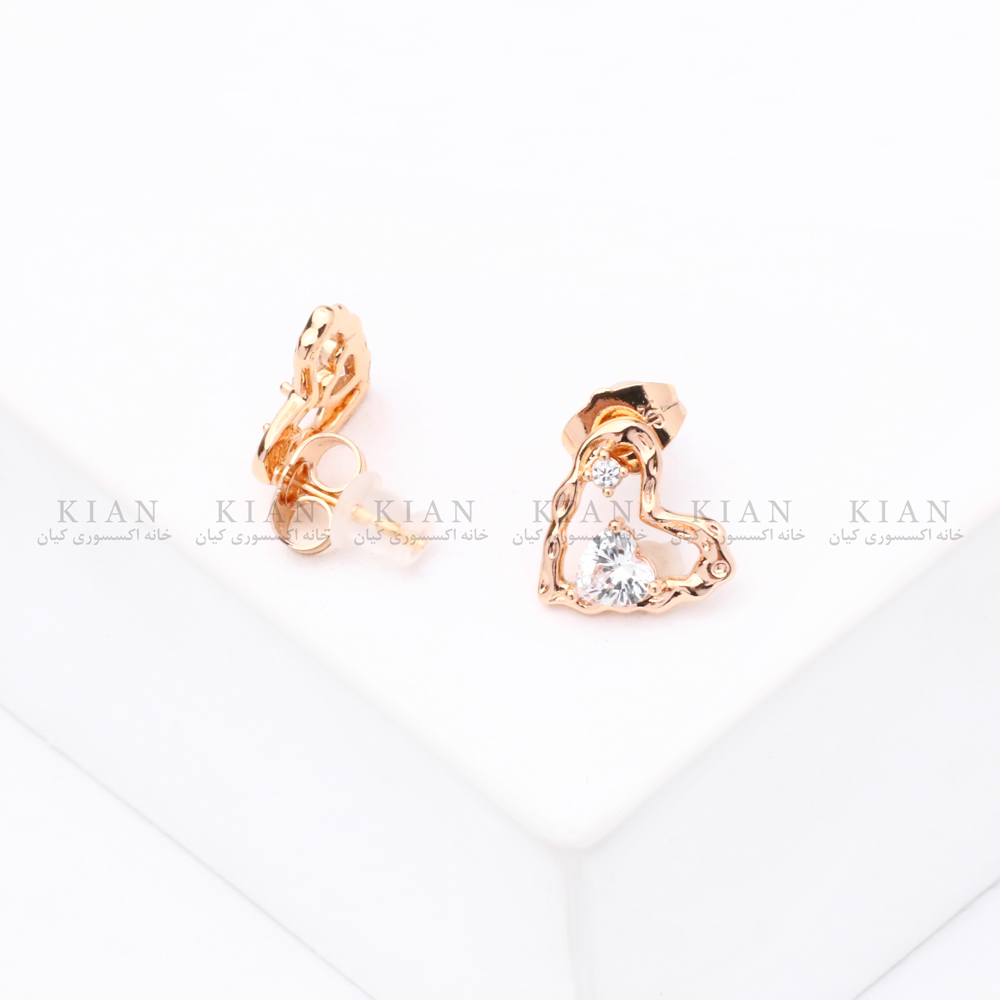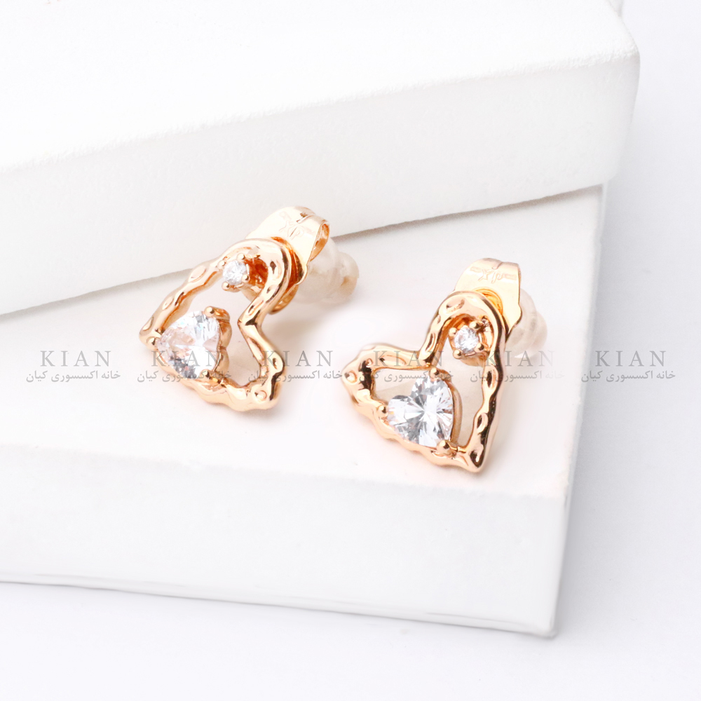 این گوشوارهها با فرم قلب ظریف و برجسته طراحی شدهاند و در مرکز هر قلب، یک نگین شفاف و درخشان قرار گرفته است که با کوچکترین حرکت نور، برق فوقالعادهای ایجاد میکند. خطوط طلایی و لطیف دور قلب نیز جلوه مدل را براقتر و شیکتر میکند.