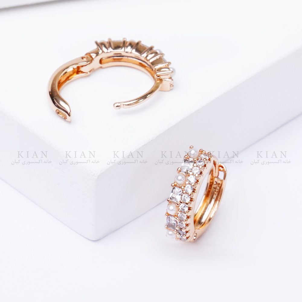 گوشواره ژوپینگ نگین‌دار یکی از پرفروش‌ترین و درخشان‌ترین مدل‌های حلقه‌ای در مجموعه زیورآلات خانه اکسسوری کیان است؛ مدلی که با ردیف نگین‌های براق و طراحی طلایی لوکس، جلوه‌ای شیک، روشن و جذاب روی گوش ایجاد می‌کند.