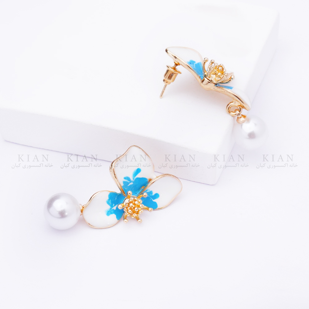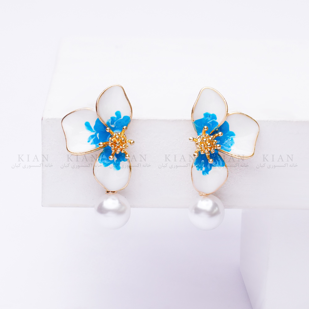 گوشواره گلبرگ و مروارید آبی یکی از جذابترین و خاصترین مدلهای دخترانه و مجلسی خانه اکسسوری کیان است. طراحی این مدل از چهار گلبرگ صدفی سفید تشکیل شده که در مرکز آنها خوشهای از گلهای ریز آبی قرار گرفته و جلوهای بسیار لطیف، شاد و متفاوت ایجاد میکند.