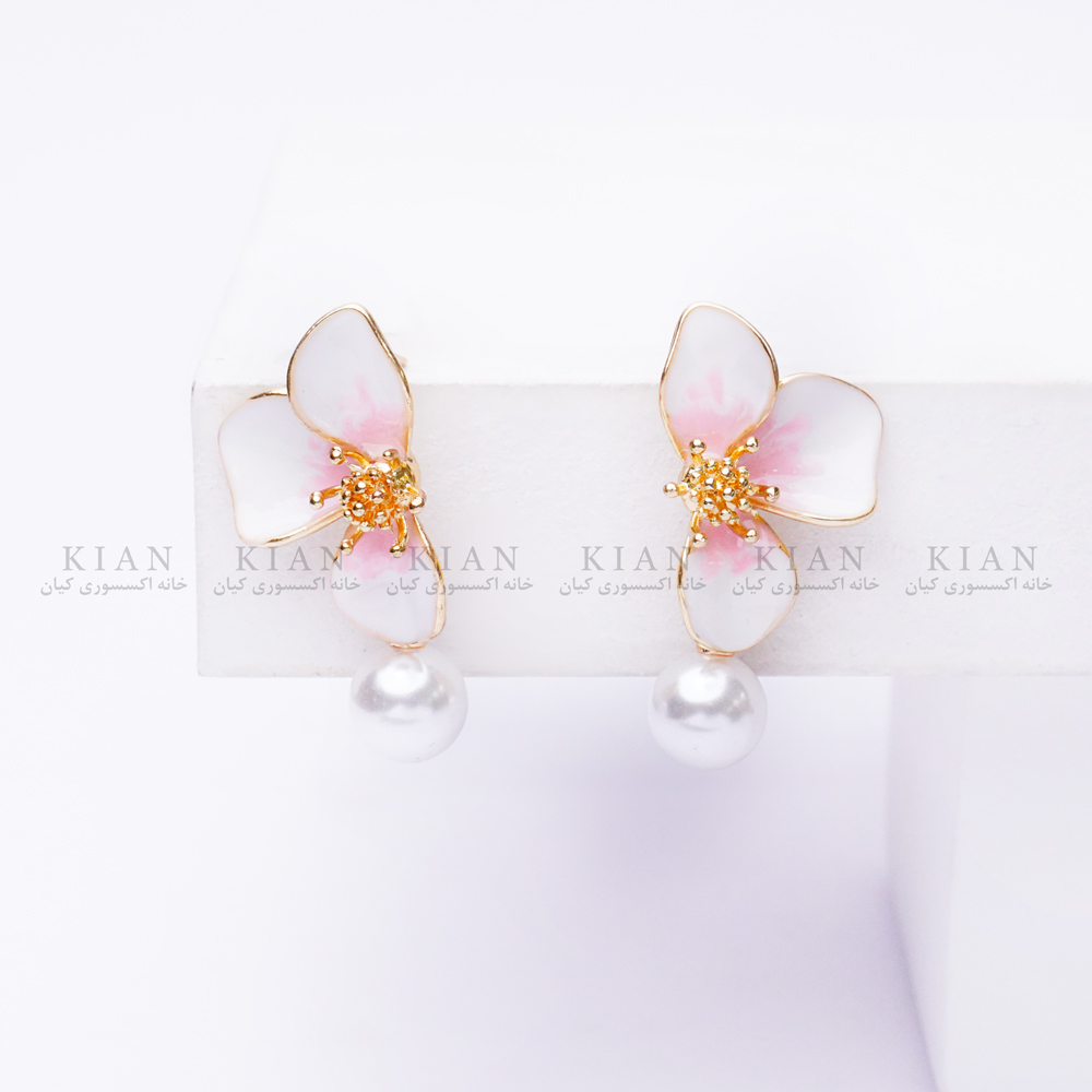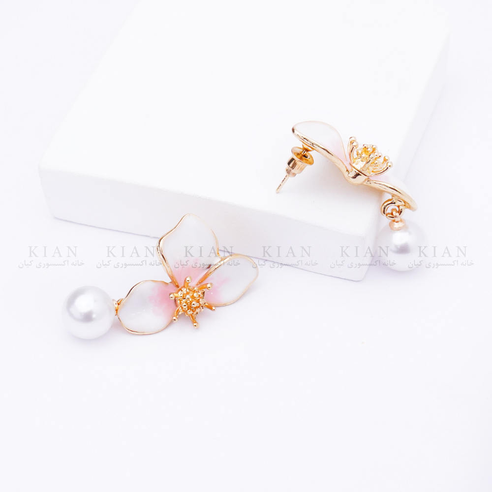 رنگ صورتی درخشان وسط گلها در کنار قاب طلایی ظریف، زیبایی چشمگیری به این گوشواره میدهد؛ و همین تضاد رنگی باعث میشود روی گوش بسیار دیده شود و استایل شما را روشنتر و خاصتر نشان دهد. در قسمت پایینی نیز یک مروارید اشکی کوچک آویزان است که با حرکت، درخششی لطیف ایجاد میکند و ترکیب مدل را کاملتر و مجلسیتر میسازد.