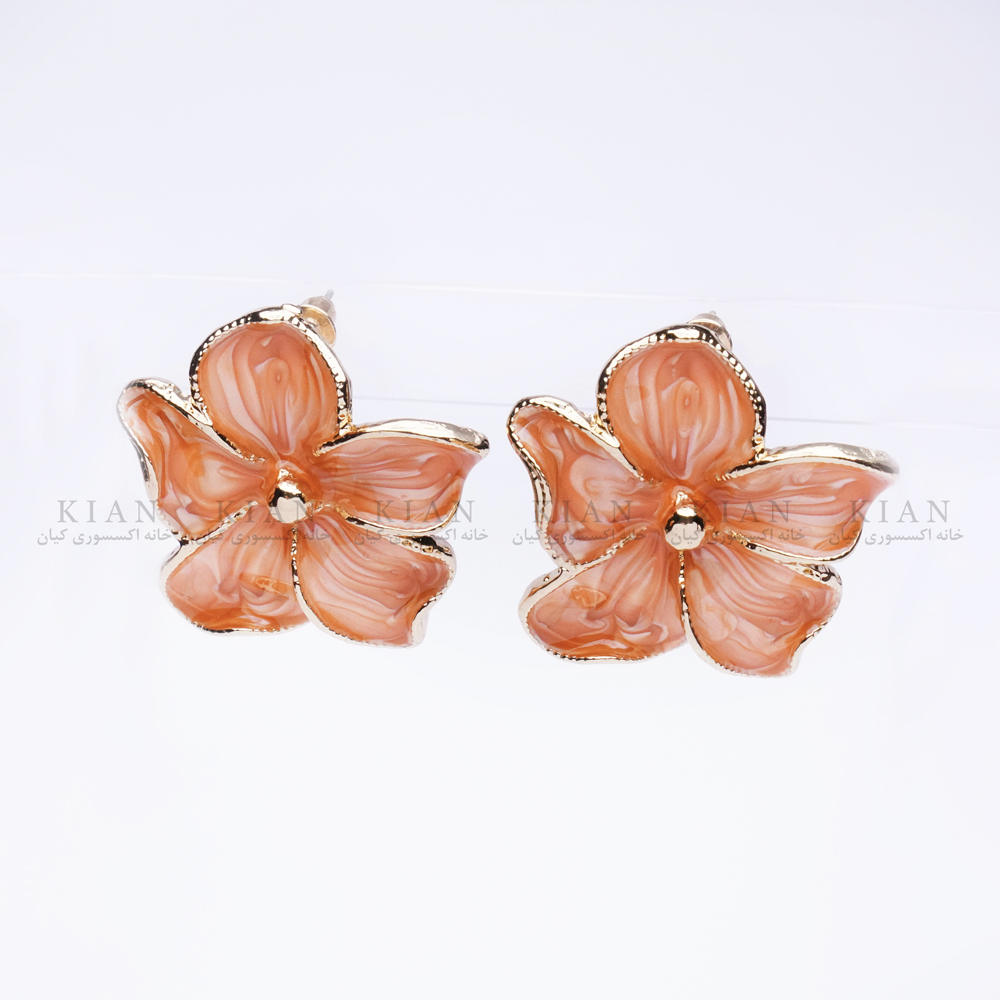 بخش طلایی الهام گرفته از فرم گل، جلوه ای زیبا و خاص به این گوشواره بخشیده و قسمت نارنجی آن با بافتی لطیف، ظاهری مدرن و جذاب ایجاد می کند.