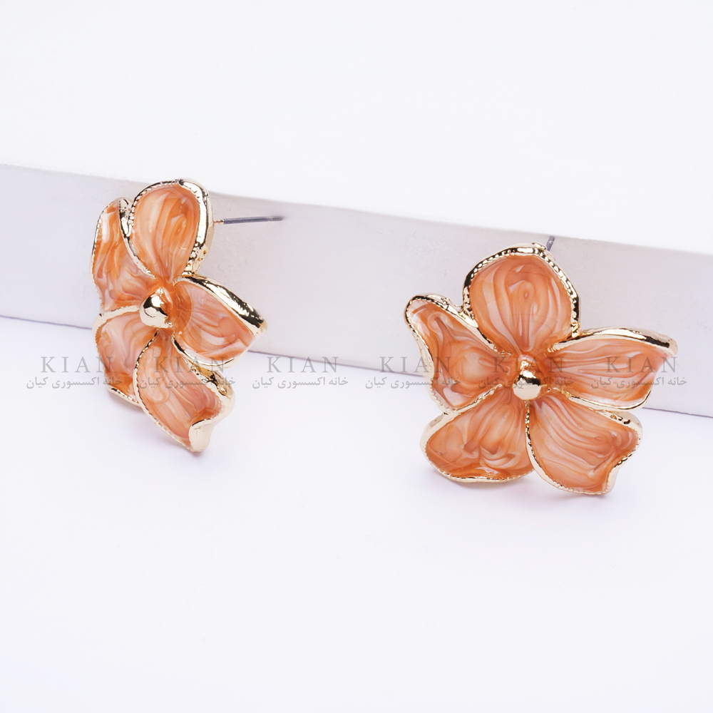 گوشواره گل نارنجی از مجموعه ی خاص خانه اکسسوری کیان، ترکیبی شیک از رنگ نارنجی براق و طلایی در طراحی ای منحصر به فرد و چشم گیر است.