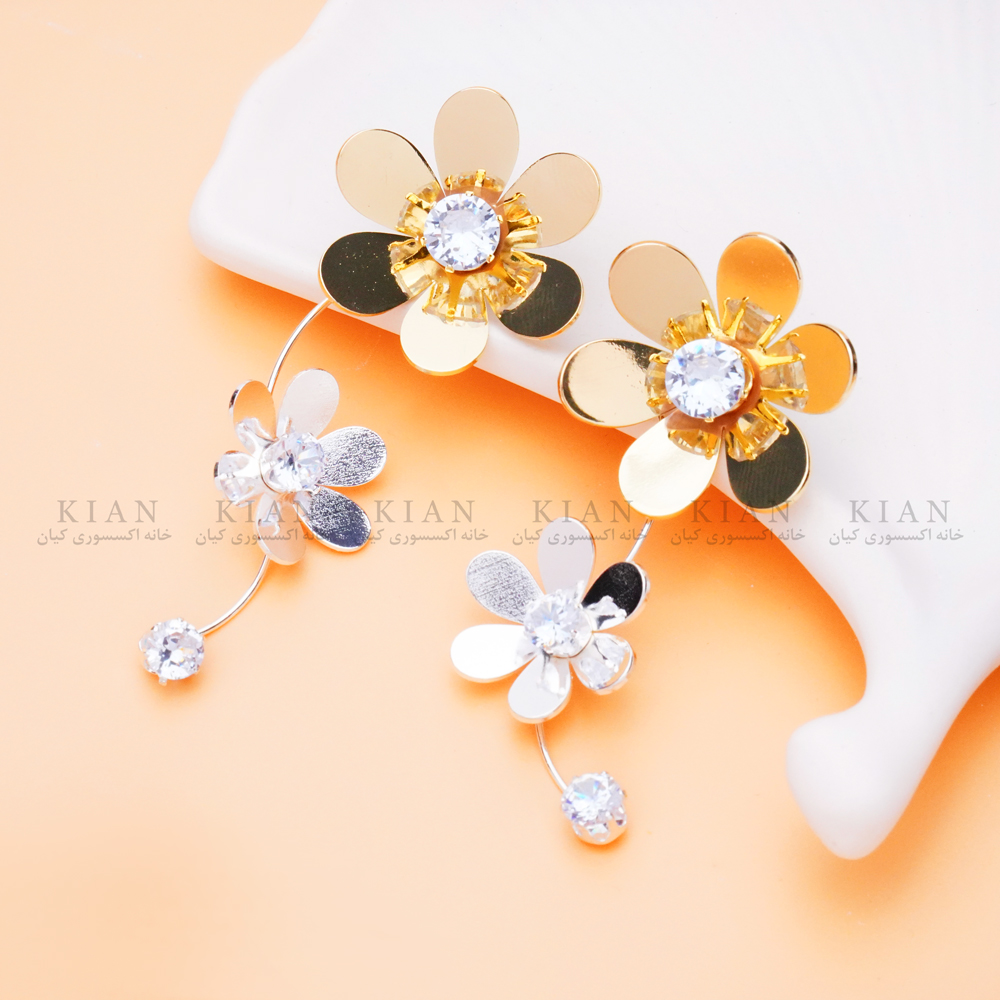 گوشواره گل و نگین آویزی