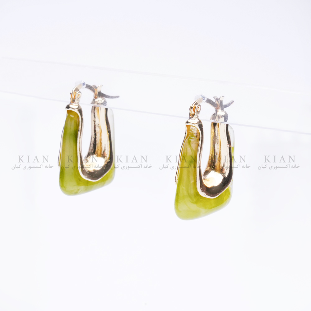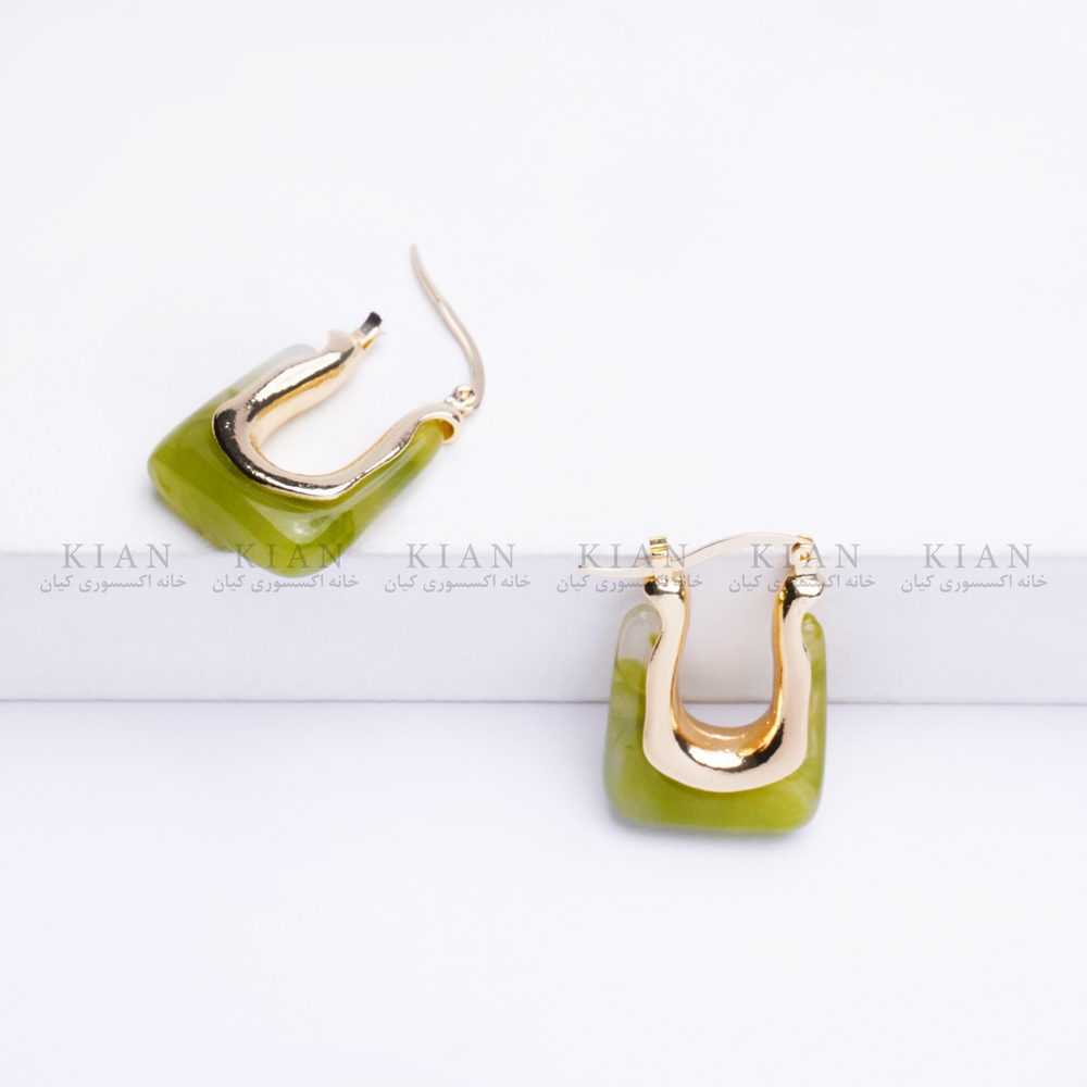 بخش طلایی با فرم U، جلوه ای خاص به این گوشواره بخشیده و قسمت سبز آن با بافتی لطیف، ظاهری مدرن و جذاب ایجاد می کند.