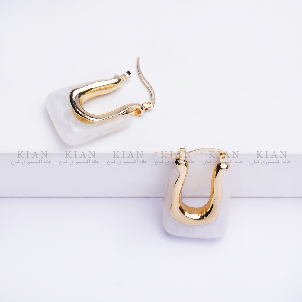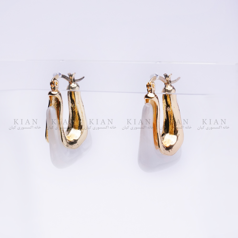گوشواره U سفید از مجموعه ی خاص خانه اکسسوری کیان، ترکیبی شیک از رنگ سفید براق و طلایی در طراحی ای منحصر به فرد و چشم گیر است.
