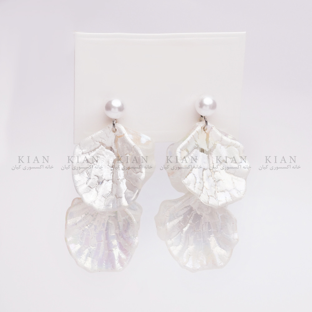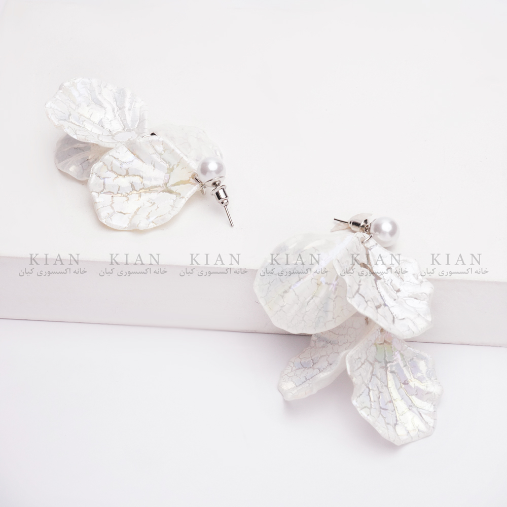 گوشواره برگ سفید و مروارید با ترکیب برگ های سفید مینایی و مروارید، جلوه ای خاص و زنانه دارد.