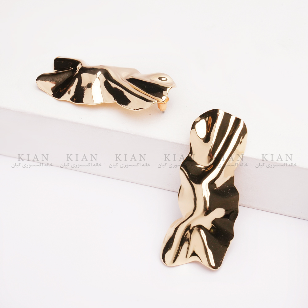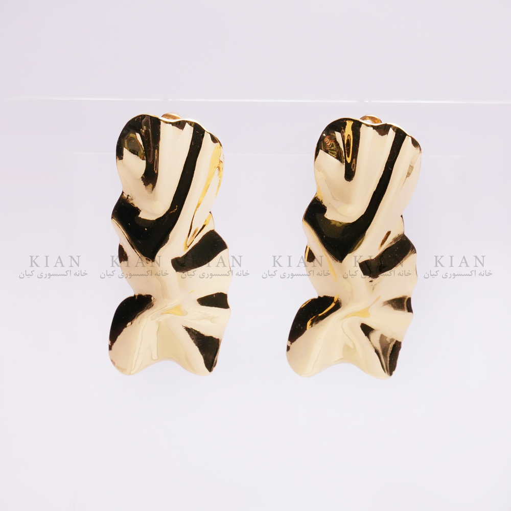 گوشواره دفرمه مستطیل طلایی با طراحی دفرمه و فرم مستطیلی، انتخابی شیک برای علاقه مندان به استایل های مدرن و مینیمال است. رنگ طلایی براق آن جلوه ای خاص به استایل روزمره یا مهمانی شما می دهد.