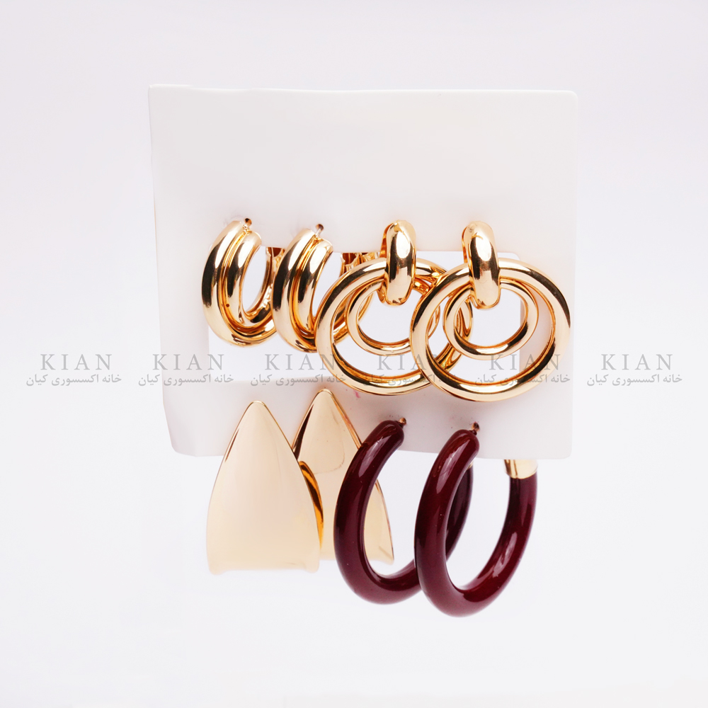 پک گوشواره حلقه زرشکی و اشک طلایی شامل دو مدل گوشواره با طراحی متفاوت اما هماهنگ است: حلقه های زرشکی خاص و گوشواره های آویز اشکی با رنگ طلایی براق. انتخابی شیک و متفاوت برای استایل های نیمه رسمی و مهمانی. پیشنهاد ویژه از خانه اکسسوری کیان برای دخترانی که به جذابیت جزئیات اهمیت می دهند.