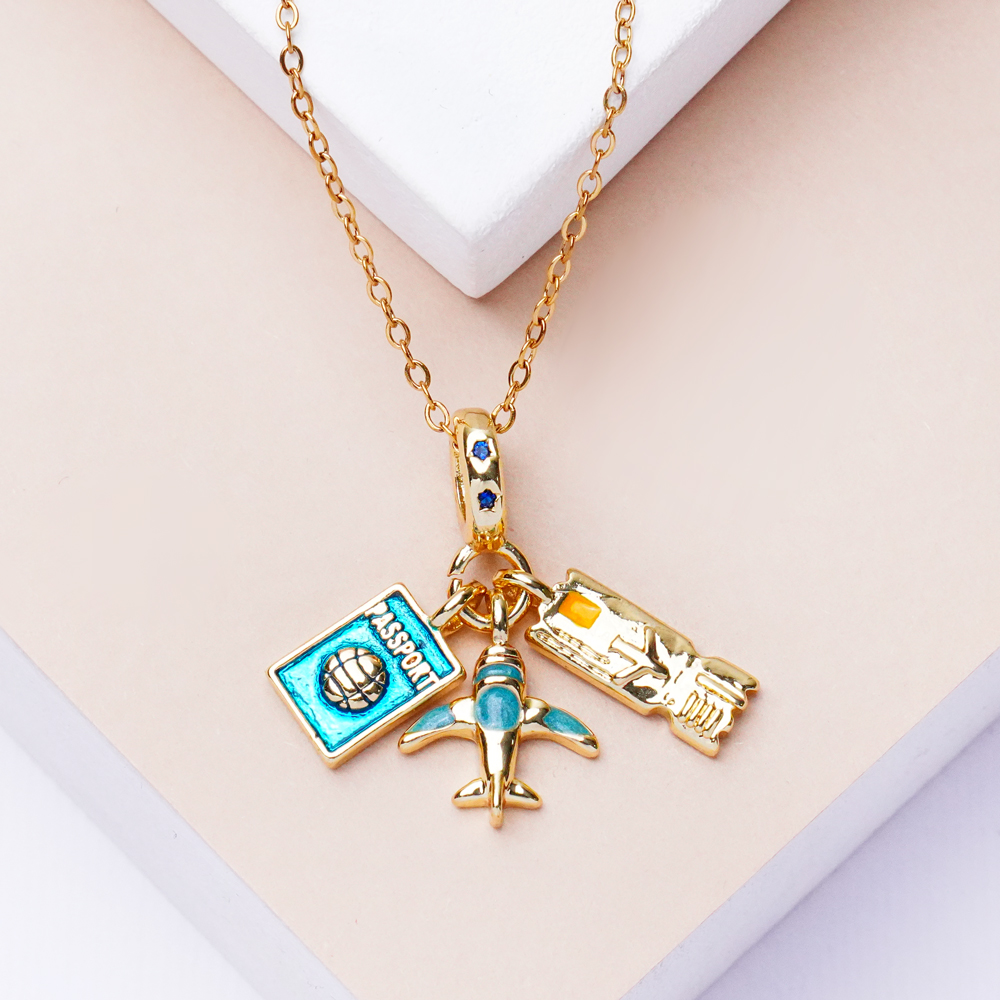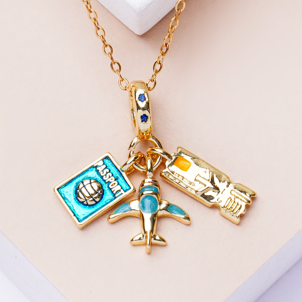 گردنبند آویز هواپیما طلایی با طراحی فانتزی و الهامگرفته از سفر و آزادی، انتخابی خاص برای افرادیست که روحیه ماجراجو و عاشق تجربههای جدید دارند. فرم هواپیما با رنگ طلایی براق، جلوهای شیک و در عین حال پرانرژی به استایل شما میبخشد.