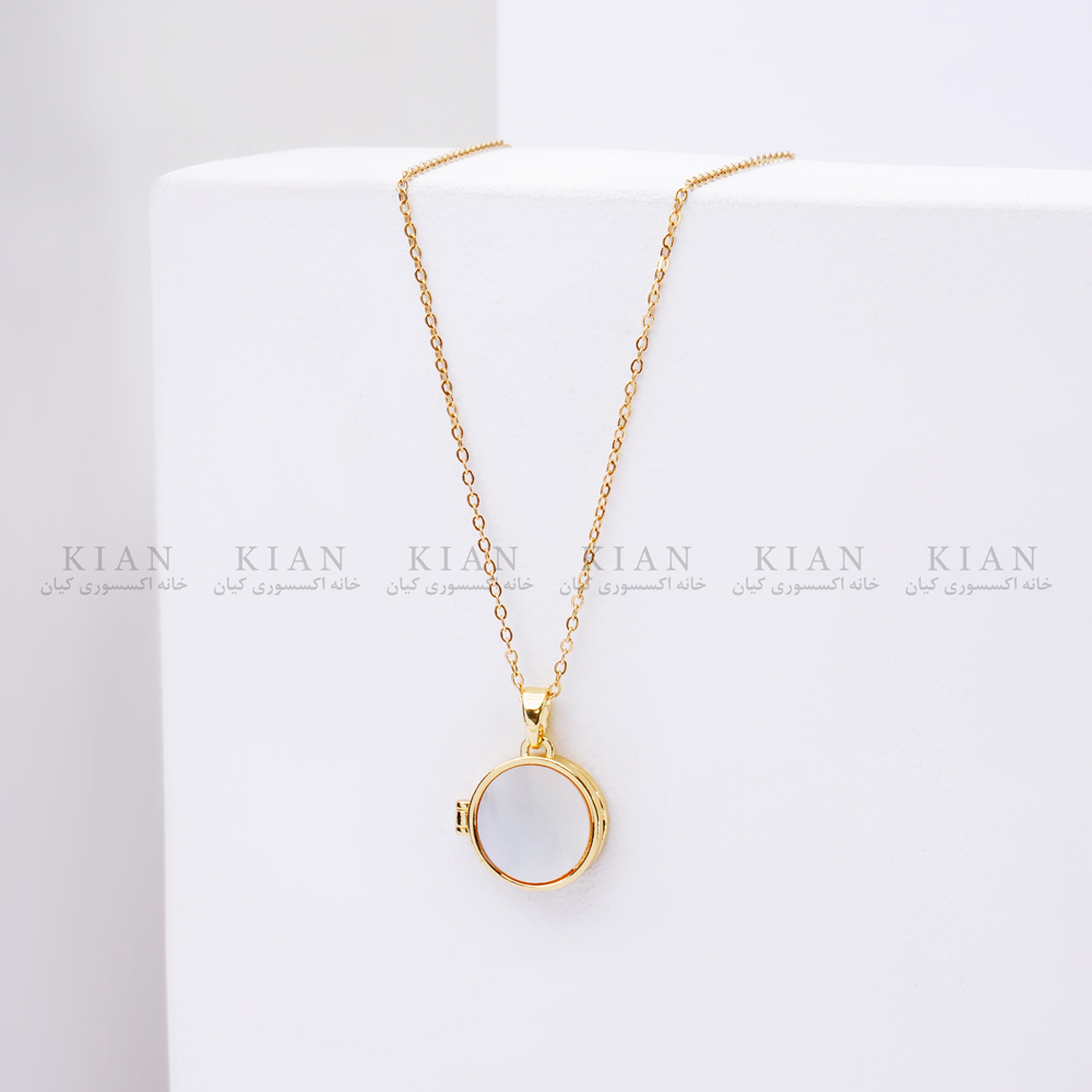 پلاک این گردنبند بهصورت دایرهای صیقلی طراحی شده و ظاهر آینهای آن باعث میشود نور را به زیبایی منعکس کند؛ به همین دلیل روی گردن جلوهای بسیار درخشان و شیک دارد. قاب طلایی دور پلاک، طراحی را کاملتر کرده و استایل آن را رسمیتر و لاکچریتر نشان میدهد. همچنین این گردنبندها باز میشوند و قاب عکس دارند.