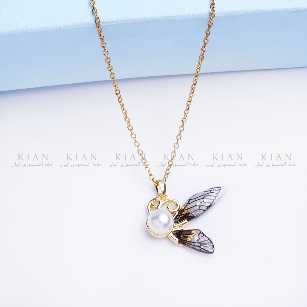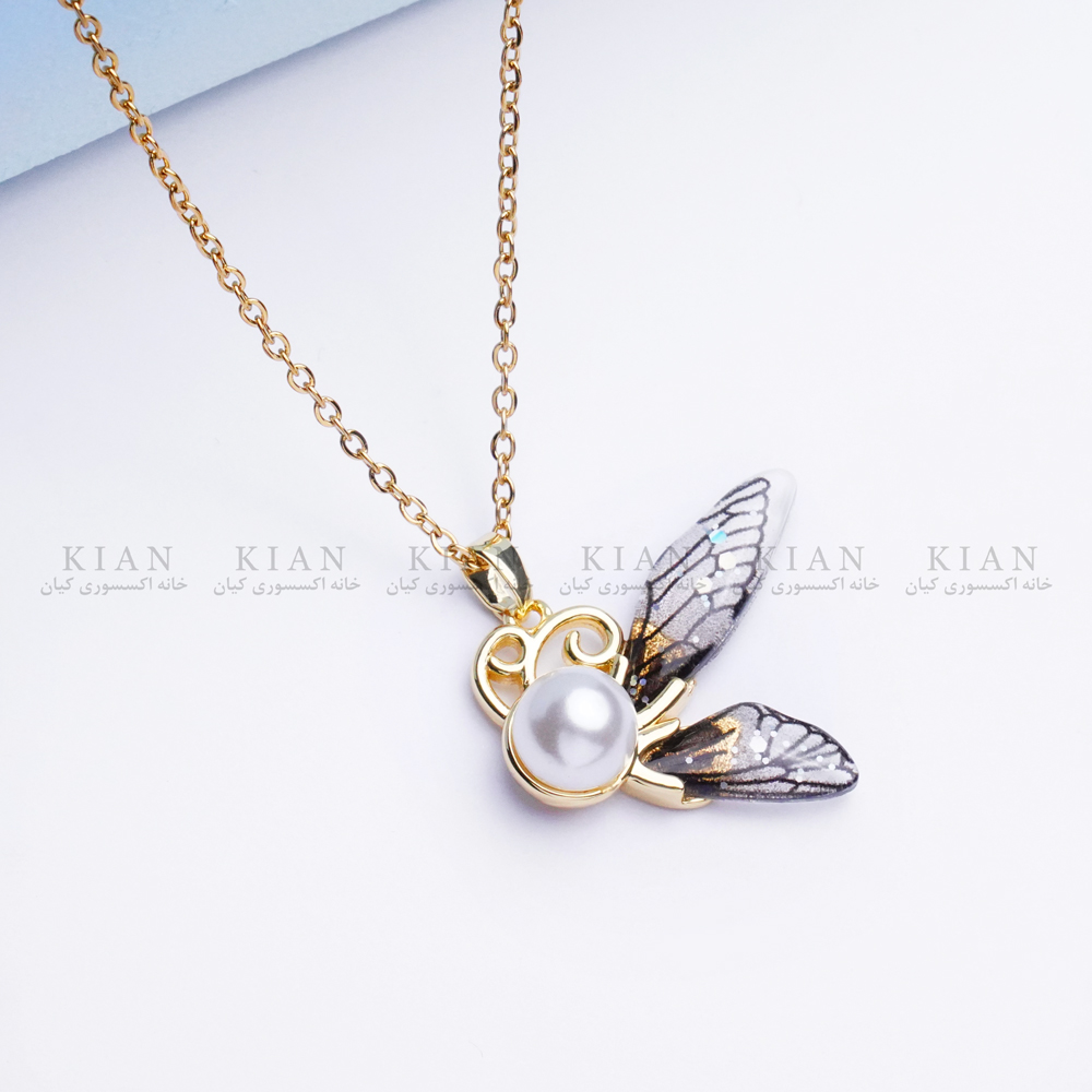 گردنبند بال مشکی پروانه از مجموعه زیورآلات درخشان و خاص خانه اکسسوری کیان، نمادی از آزادی، تحول و زیبایی زندگی است. طراحی لطیف بالهای پروانه با رنگ مشکی در کنار مروارید مرکزی، جلوهای جادویی و چشمنواز ایجاد کرده است.