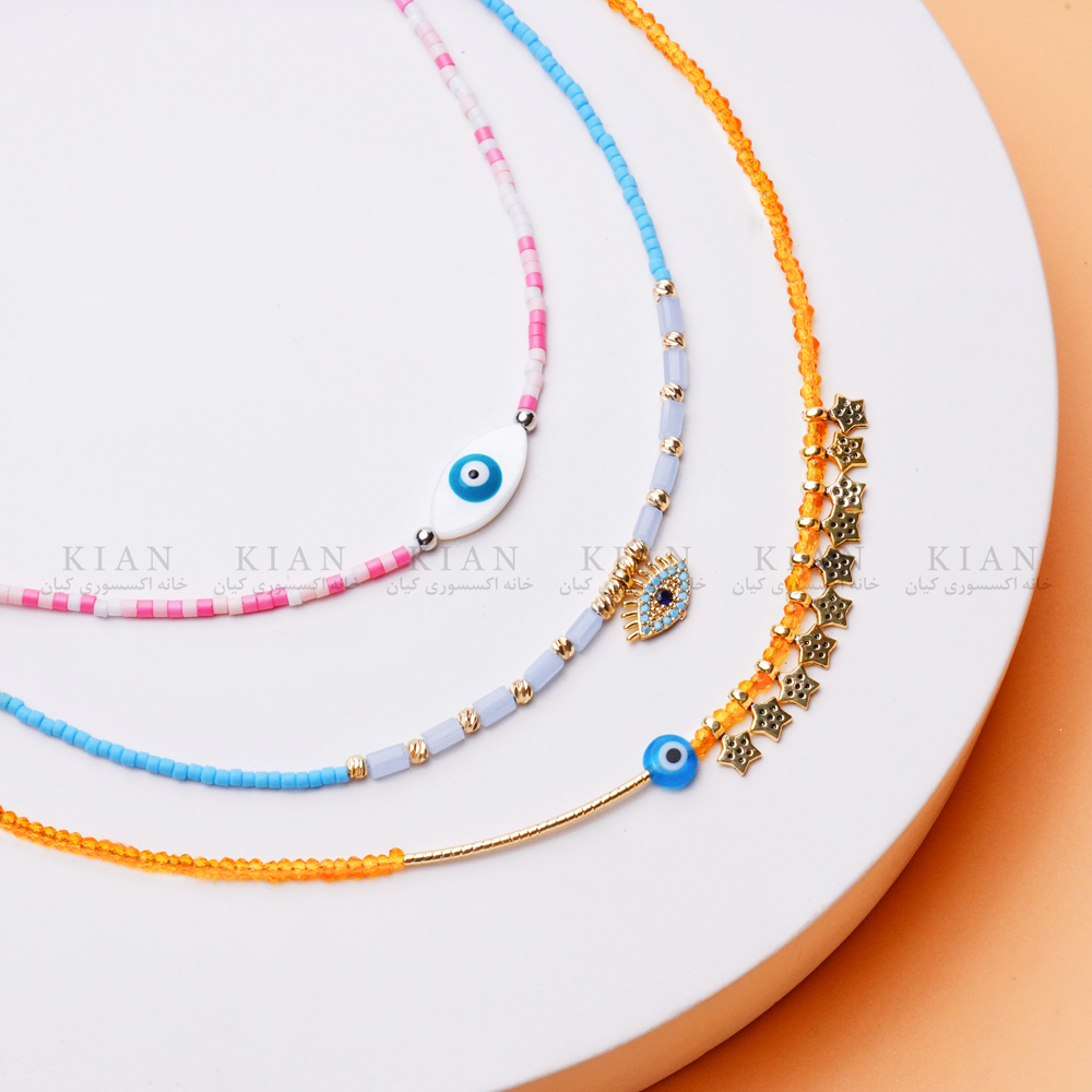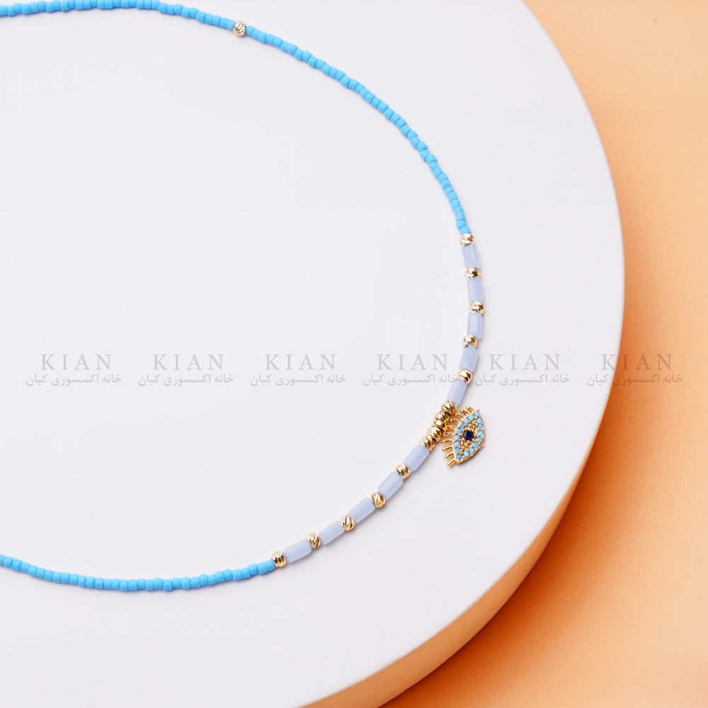 گردنبند رنگی 4 ، گردنبند آبی چشم نظر طلایی