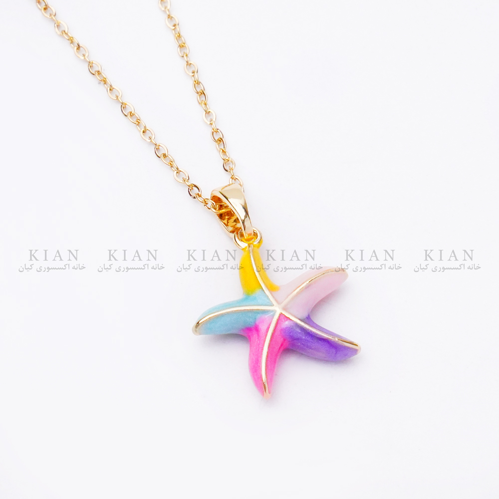 پلاک این گردنبند به شکل یک ستاره کوچک طراحی شده که هر بخش آن با رنگهای ملایم و جذاب مثل صورتی، بنفش و زرد پوشیده شده است. این ترکیب رنگی شاد باعث میشود گردنبند برای استایلهای روزمره، استایل تابستانی، دانشگاه و مهمانیهای دوستانه گزینهای فوقالعاده باشد.