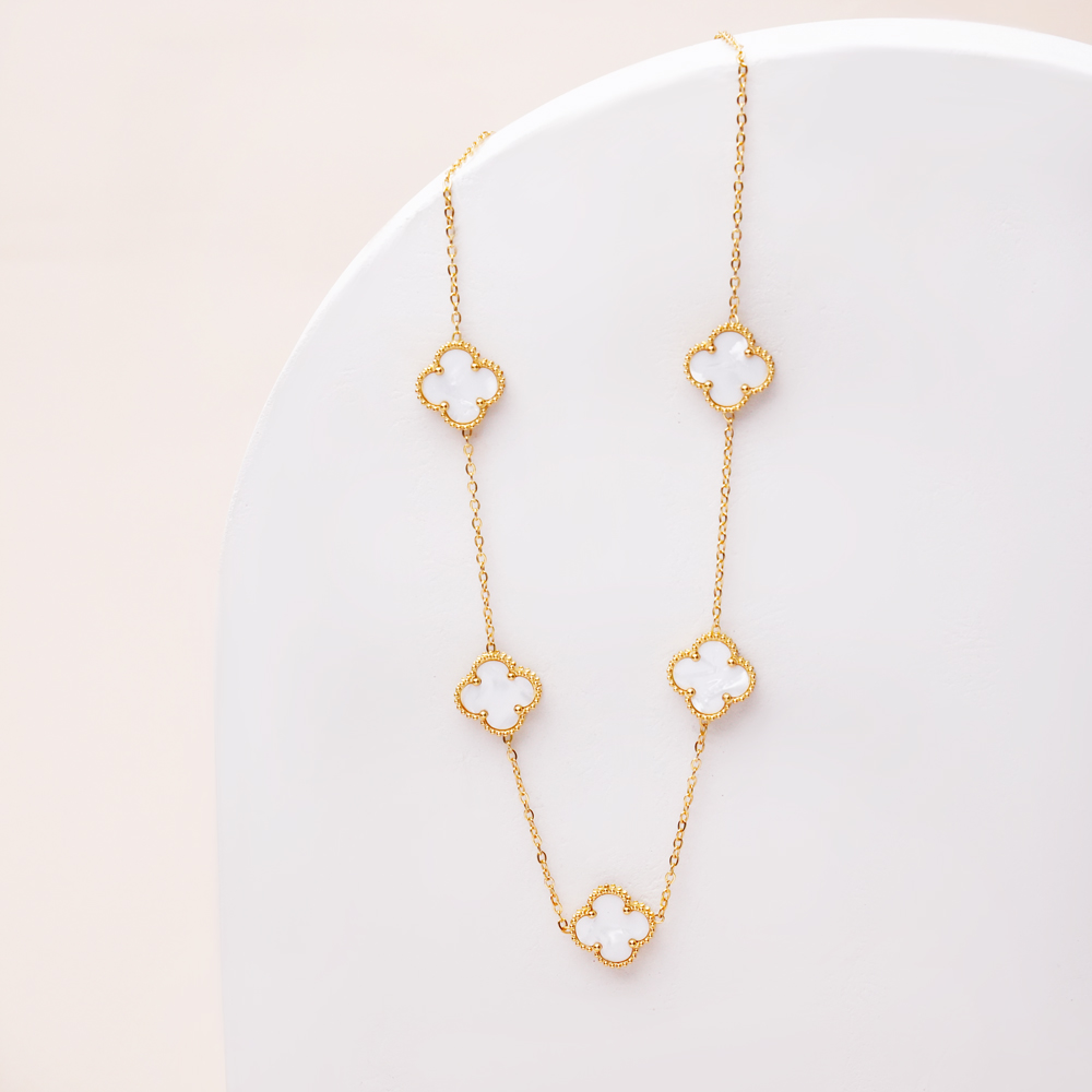 با گردنبند سفید طلایی درشت ونکلیف خانه اکسسوری کیان، استایلی لوکس، خاص و متمایز را تجربه کنید