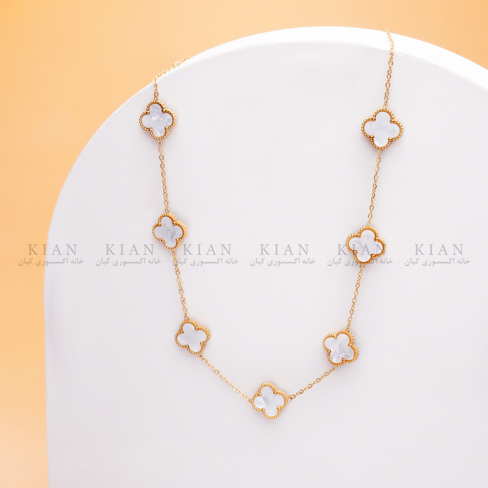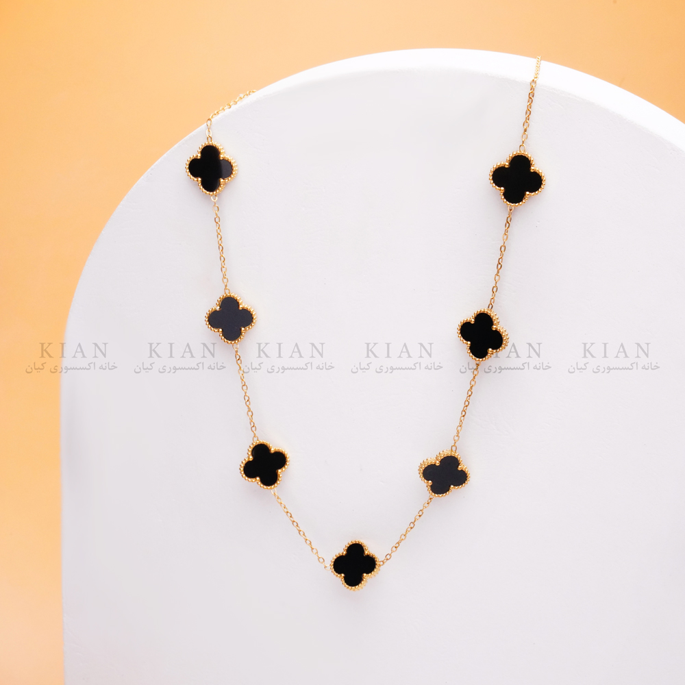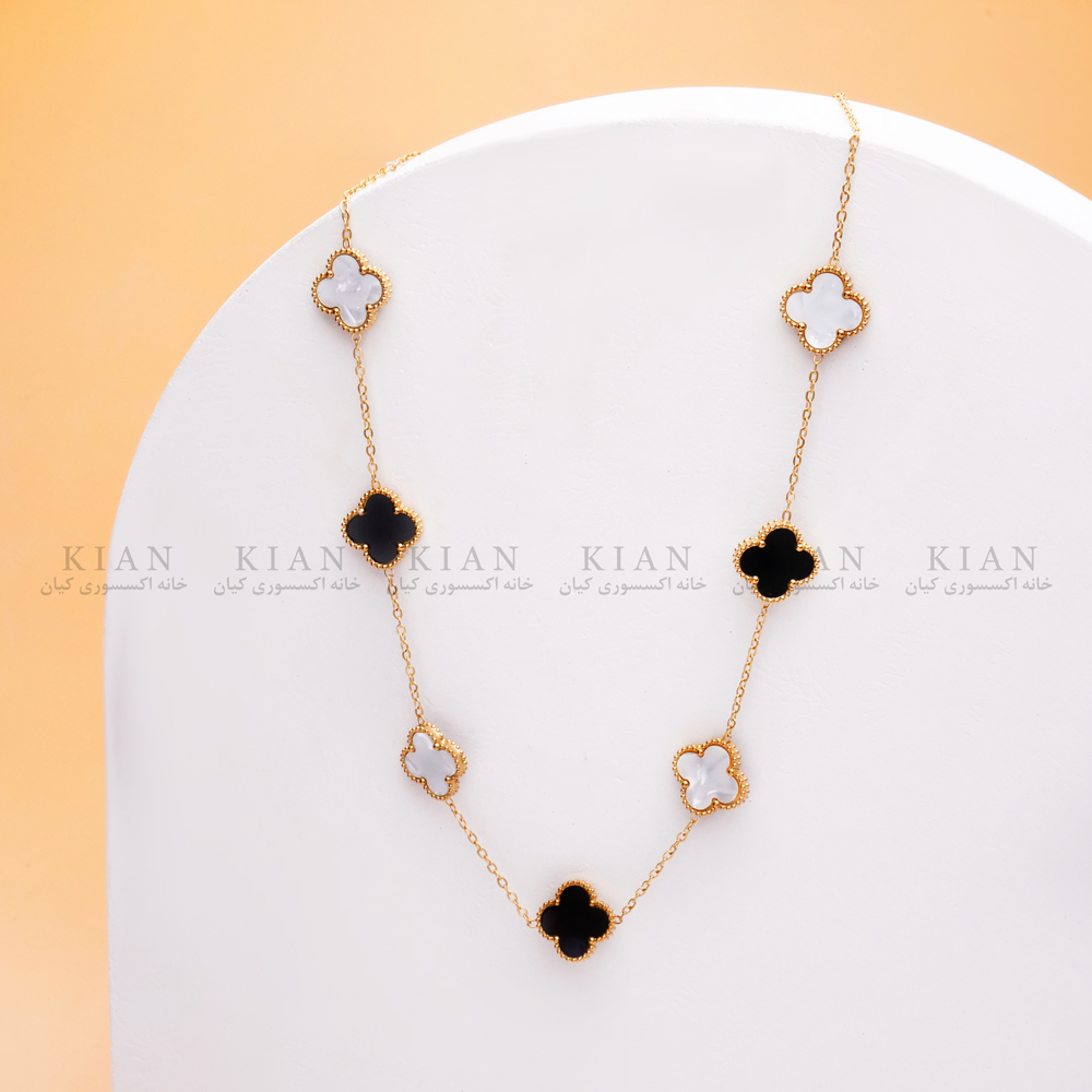 گردنبند سفید مشکی 7 گل با طراحی الهام گرفته از گل معروف این برند، نمادی از ظرافت و لوکس بودن است. ترکیب فرم کلاسیک و جزئیات ظریف، این گردنبند را به گزینه ای شیک برای استفاده روزمره یا مجالس رسمی تبدیل می کند.