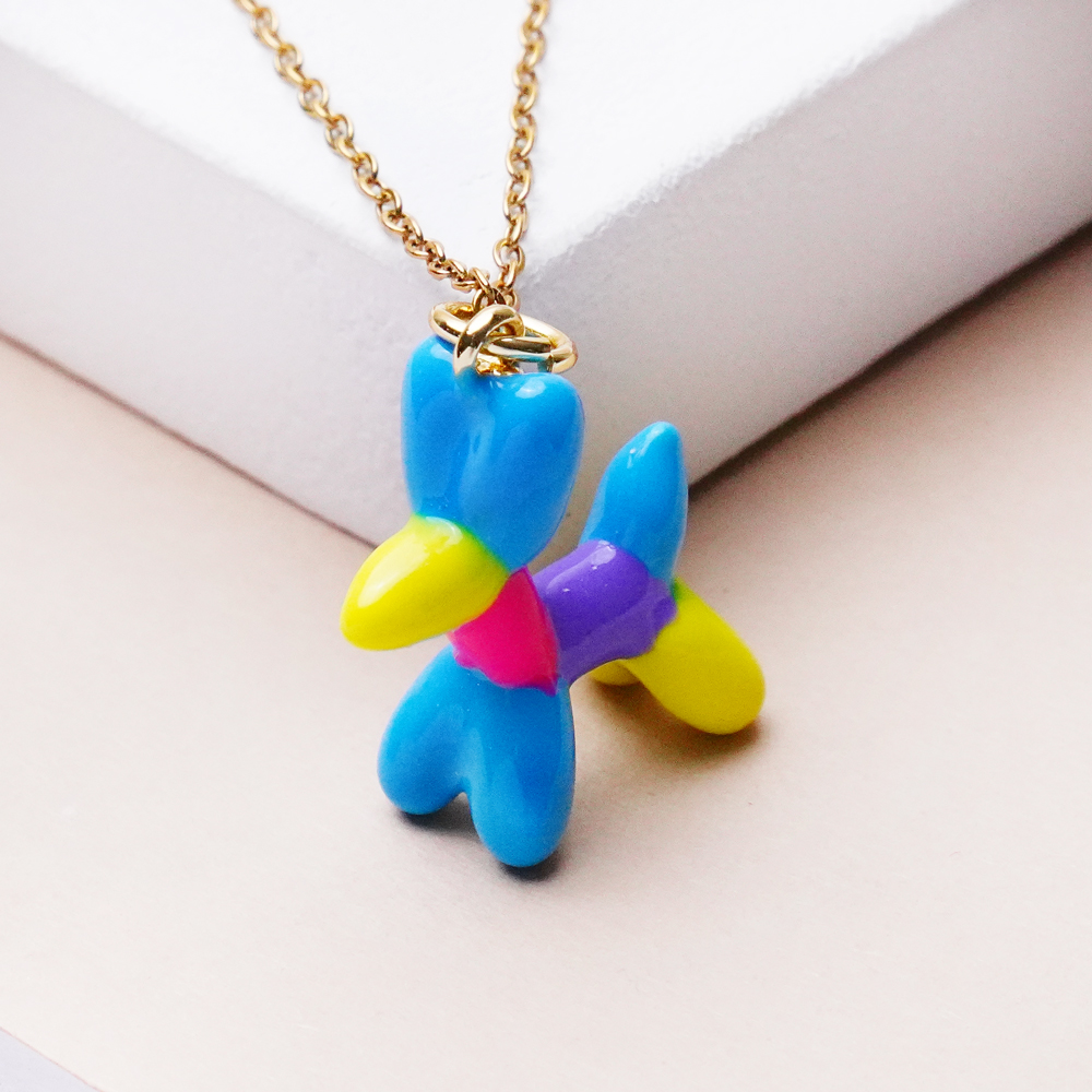 گردنبند سگ بادکنکی رنگی با طراحی فانتزی و شاد، انتخابی خاص برای افرادی‌ست که به اکسسوری‌های متفاوت و پرانرژی علاقه دارند. الهام‌گرفته از فرم بامزه سگ‌های بادکنکی، این آویز رنگی حس شادی، خلاقیت و کودکانه‌ای دوست‌داشتنی را به استایل شما اضافه می‌کند.