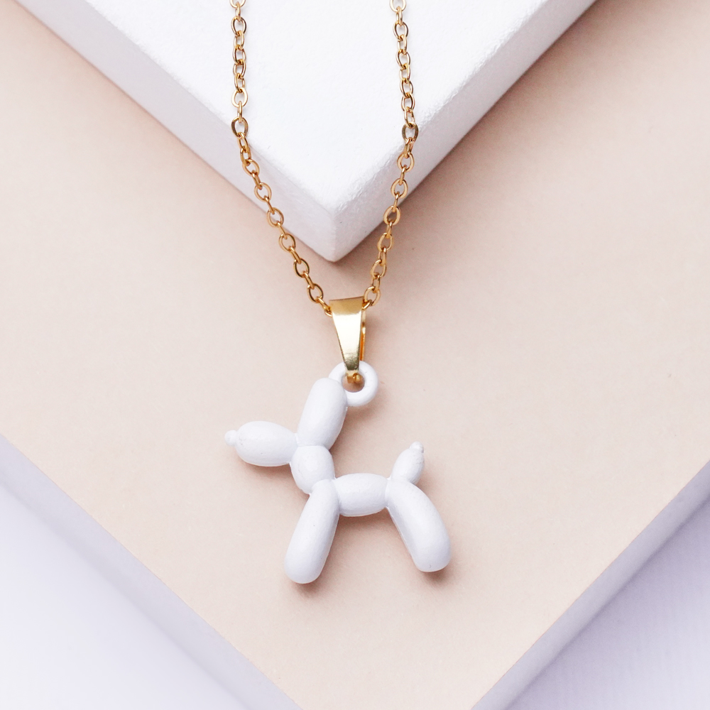 گردنبند سگ بادکنکی سفید با طراحی فانتزی و رنگی جسورانه، انتخابی شاد و متفاوت برای افرادیست که به اکسسوریهای خاص و ترند علاقه دارند. فرم بامزه سگ بادکنکی در کنار رنگ سفید درخشان، جلوهای پرانرژی و چشمگیر ایجاد کرده و استایل شما را از سادگی خارج میکند.
