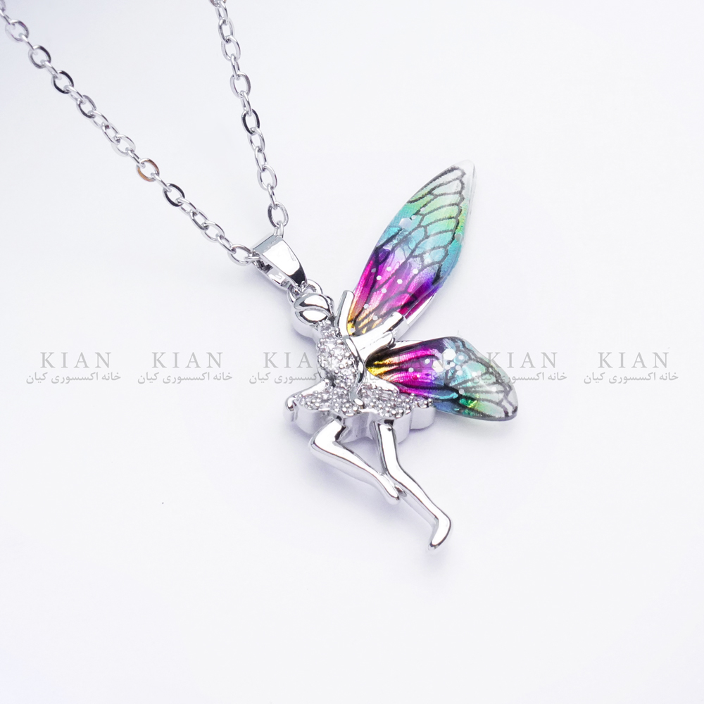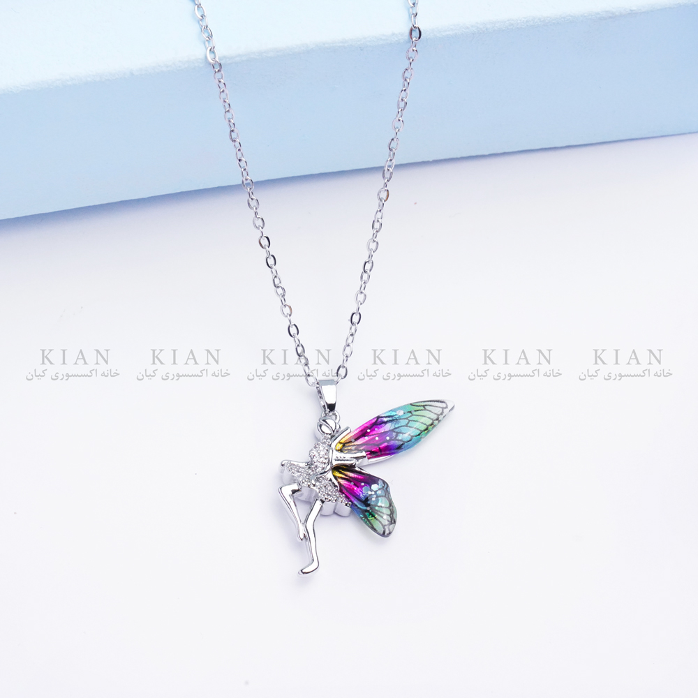 گردنبند فرشته هفت رنگ نقره ای از مجموعه زیورآلات خاص و درخشان خانه اکسسوری کیان، تلفیقی از لطافت و انرژی رنگ‌هاست. طراحی ظریف فرشته با نگین‌های رنگی درخشان، نمادی از عشق، امید و نشاط است که هر نگاه را به خود جذب می‌کند.