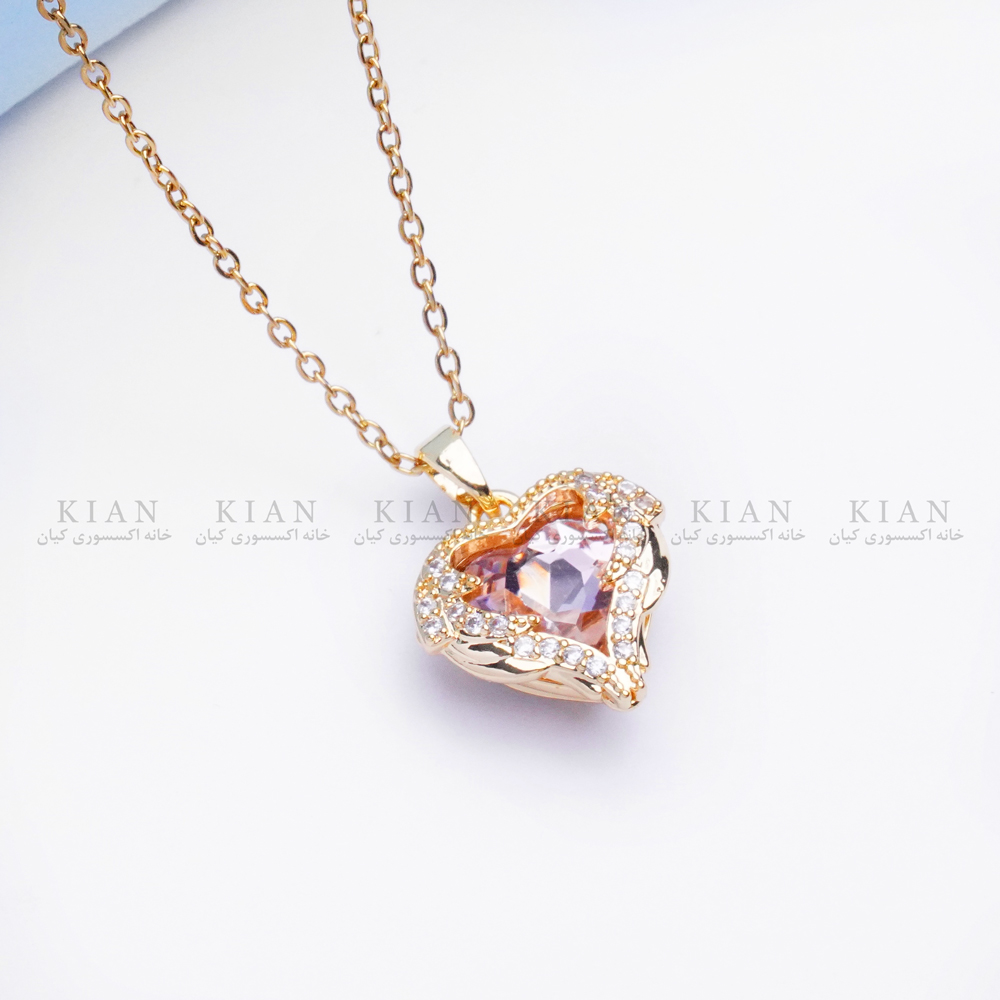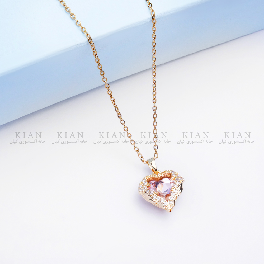 گردنبند قلب صورتی طلایی از مجموعه زیورآلات ظریف و عاشقانه خانه اکسسوری کیان، ترکیبی از لطافت، عشق و درخشش است. طراحی ظریف قلب با طیف صورتی ملایم در کنار رنگ طلایی براق، جلوه‌ای زنانه و رمانتیک به این گردنبند بخشیده است.