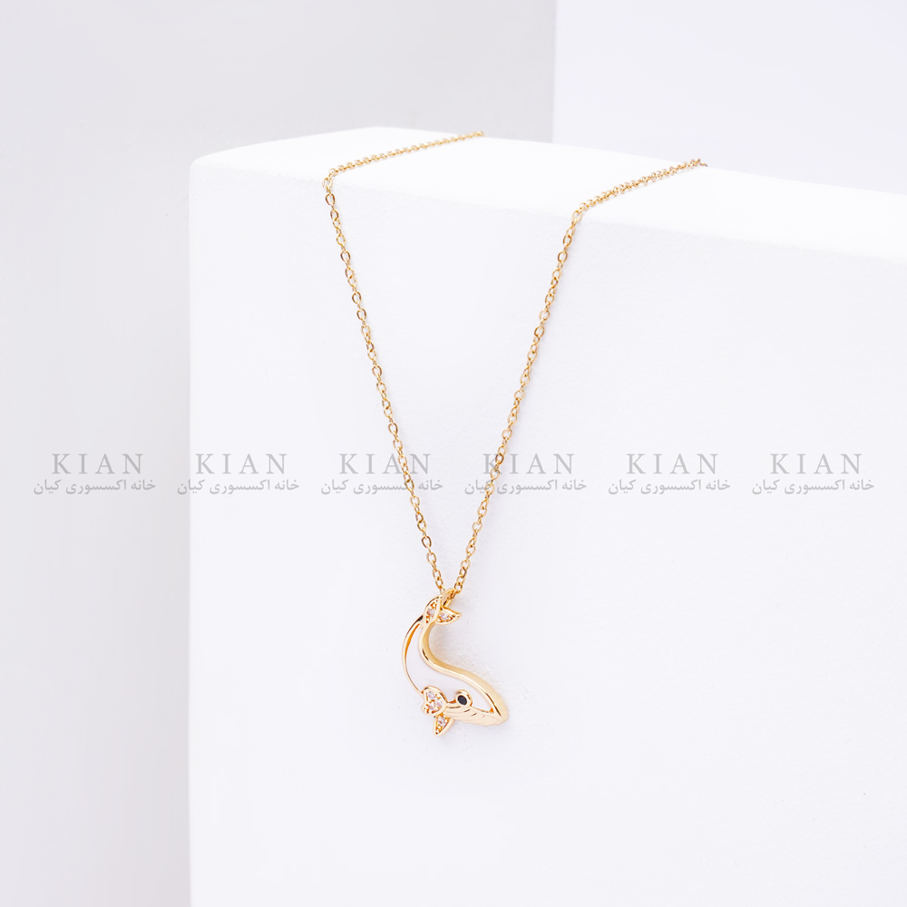 پلاک این گردنبند به شکل یک ماهی کوچک طراحی شده و قسمت میانی آن با طرح صدفی سفید براق تزئین شده است. این بخش صدفی در برخورد با نور، درخششی ملایم ایجاد میکند و جلوهای لطیف و تمیز به گردنبند میبخشد. قاب طلایی ظریف دور ماهی نیز مدل را مرتبتر، شیکتر و چشمگیرتر کرده است.